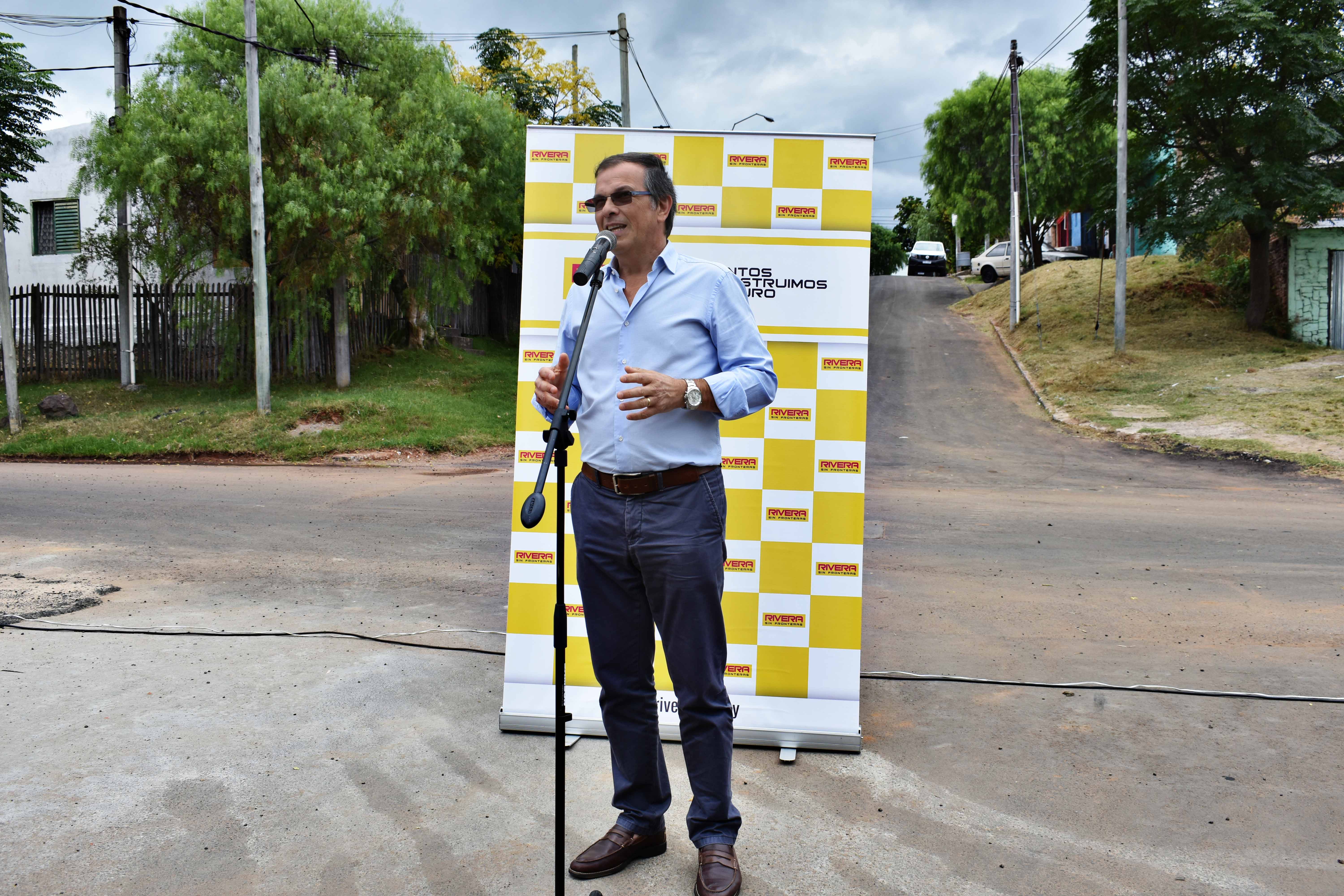 El intendente Departamental de Rivera, Cr. Richard Sander Darín, acompañado de su equipo de gobierno, hizo entrega a la comunidad las obras de 54 cuadras con pavimento de carpeta asfáltica, de los barrios Saavedra y Cerro del Marco, en un acto en la intersección de las calles José Pedro Varela y Faustino Carámbula, el que se realizó este jueves 30 de enero en horas de la mañana.