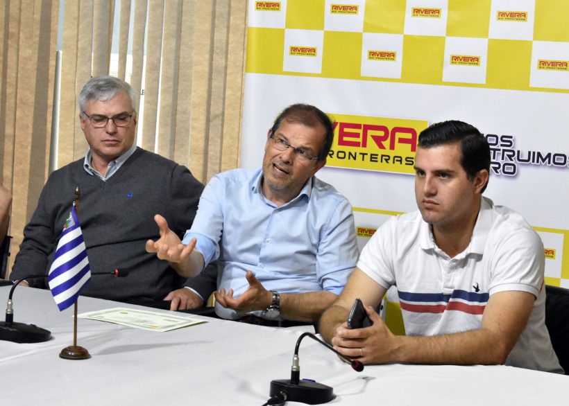 Guillermo Seleguín y Esteban Morán estudiantes de la Escuela Agraria de Rivera, son la dupla ganadora de la Ovinatlón 2019 y fueron recibidos por el intendente Departamental de Rivera, Cr. Richard Sander Darín, para hacerle entrega de los premios (un viaje para 10 personas a las Termas de Almirón) obtenidos en las pruebas de destreza (Ovinatlón) en Curticeiras, en el marco de la Expo Rivera 2019 (4,5 y 6 de octubre), que contó con el apoyo de la intendencia y empresas del medio.