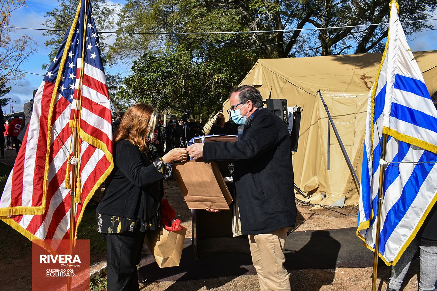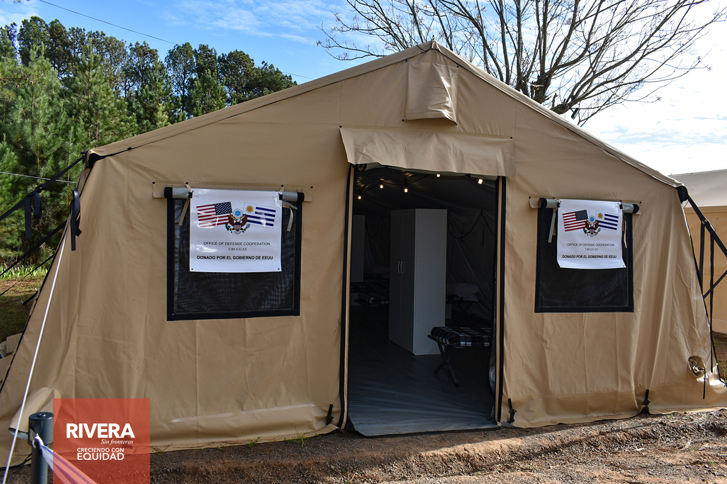 La Embajada de EE.UU en Uruguay, donó cinco (5) carpas desmontables, cuatro carpas con capacidad para atender a 40 migrantes y una carpa que funcionará como oficina administrativa.