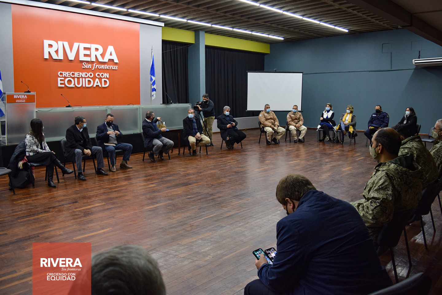 Al terminar el acto protocolar donde se inauguró oficialmente el Hospital de Campaña, las autoridades se reunieron con los integrantes del CECOED, en las instalaciones de la Intendencia.