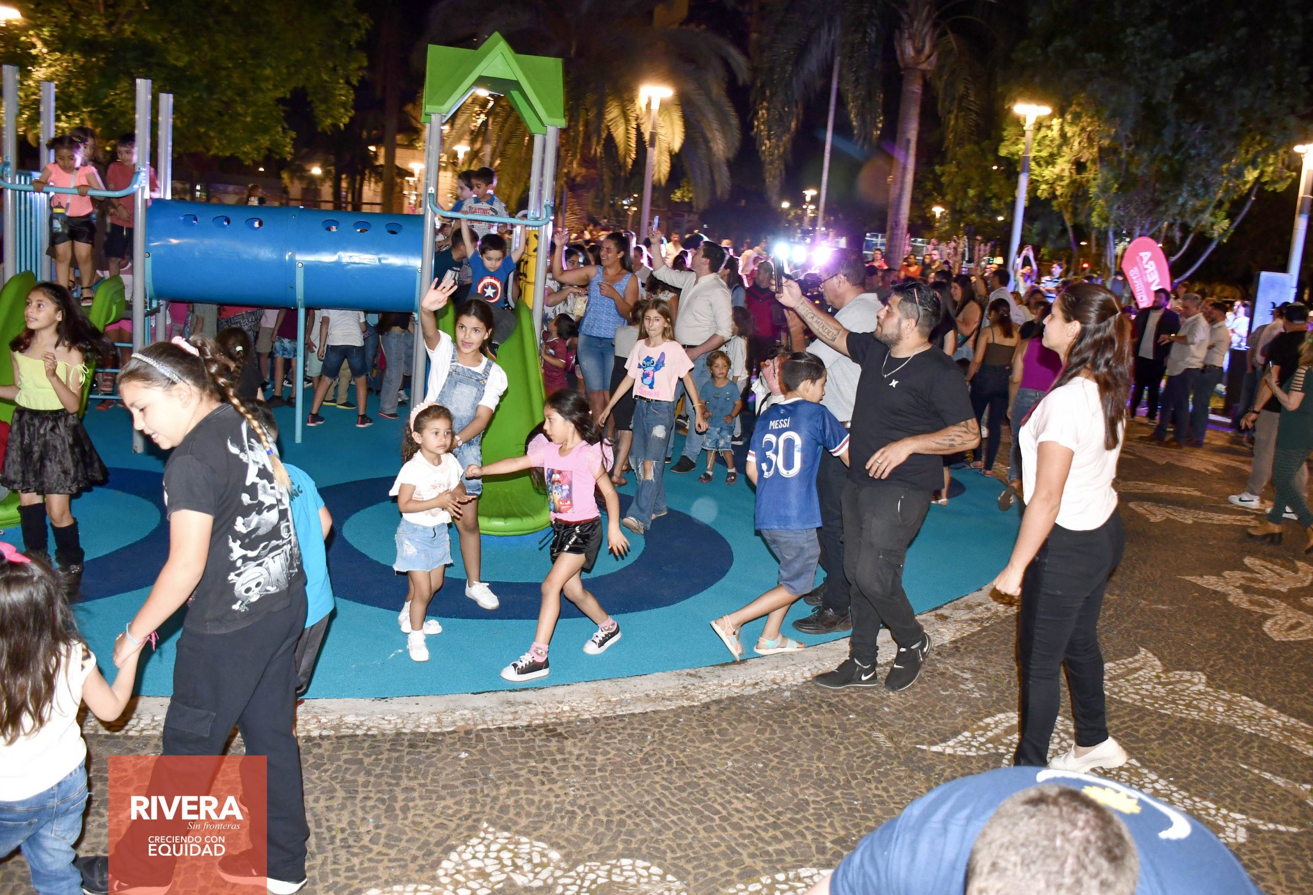 El domingo 20, la Plaza Artigas se llenó de alegría con la reinauguración del Rincón Infantil de Primera Infancia, donde cientos de vecinos disfrutaron de una gran fiesta. Este renovado espacio cuenta con nuevos juegos y un pavimento de caucho, mejorando así la seguridad para los más pequeños.