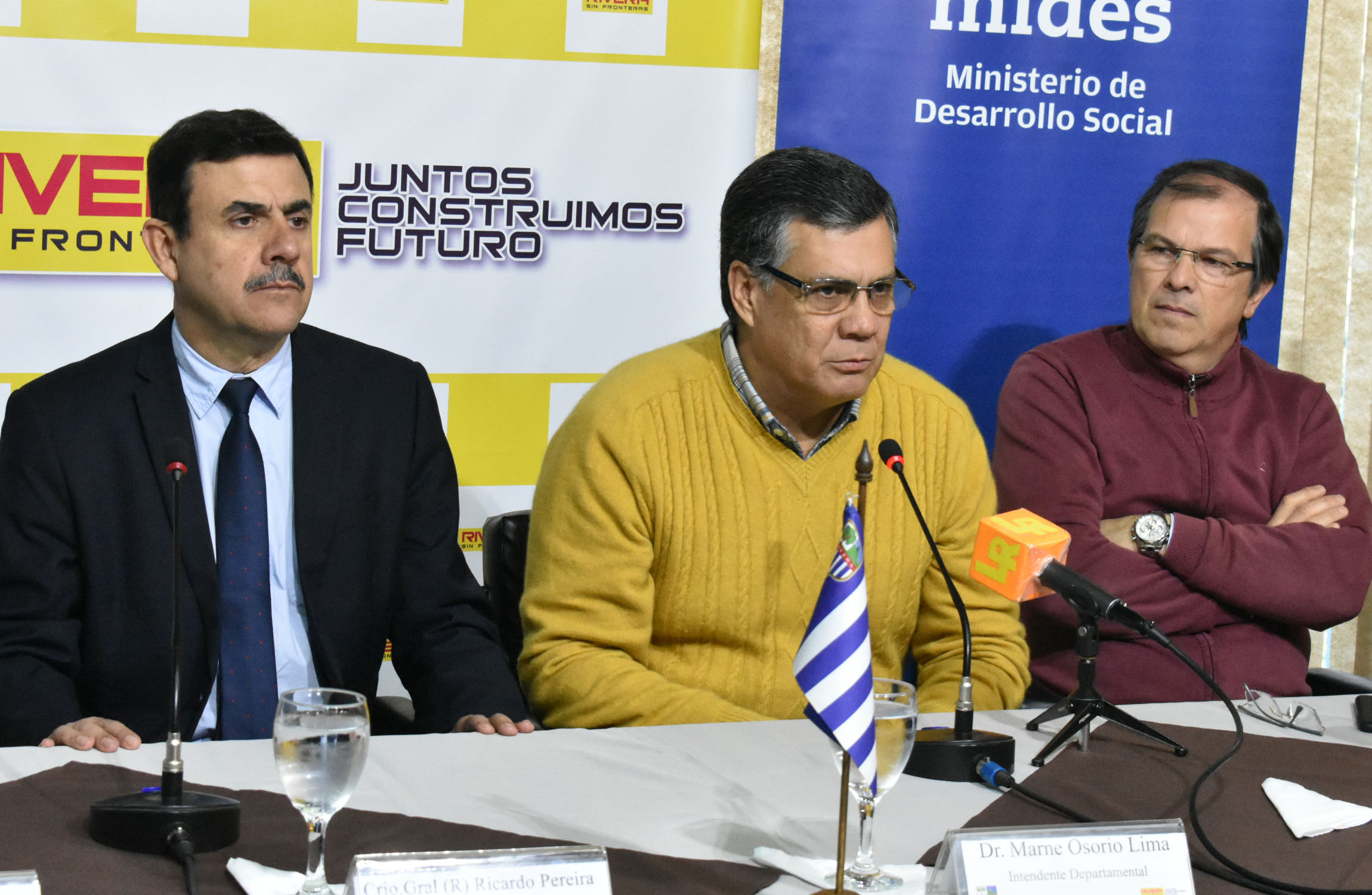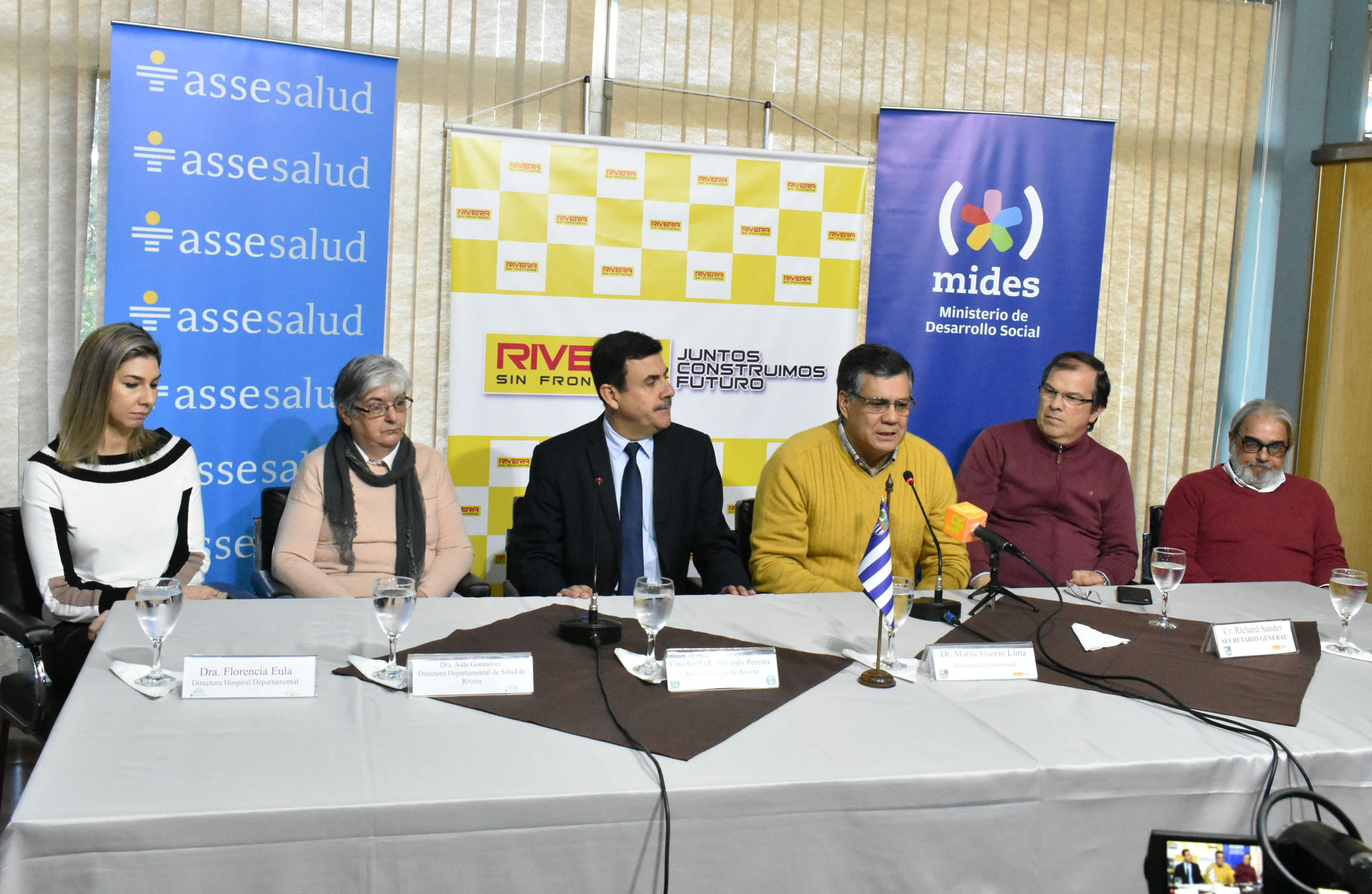 El Dr. Marne Osorio Lima, acompañado por el Secretario General de la IDR, Cr. Richard Sander, el Jefe de Policía de Rivera, la directora del Hospital Departamental de Rivera, la directora Departamental de Salud, y el Jefe Departamental del MIDES, hicieron uso de la palabra para informar las articulaciones del Plan Polar.