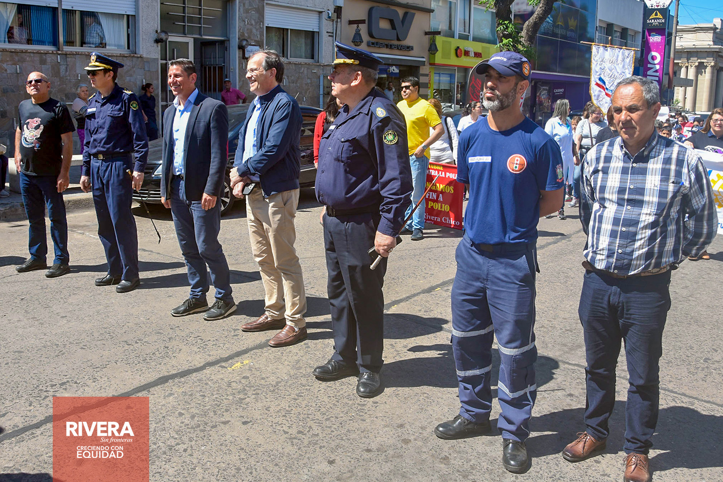 En la misma participaron autoridades del gobierno departamental de Rivera; autoridades civiles y policiales; representantes y alumnos de instituciones de la educación pública y privada; autoridades de la secretaría de Tránsito de la Prefeitura de Santana do Livramento, clubes de servicio y bandas de la frontera.