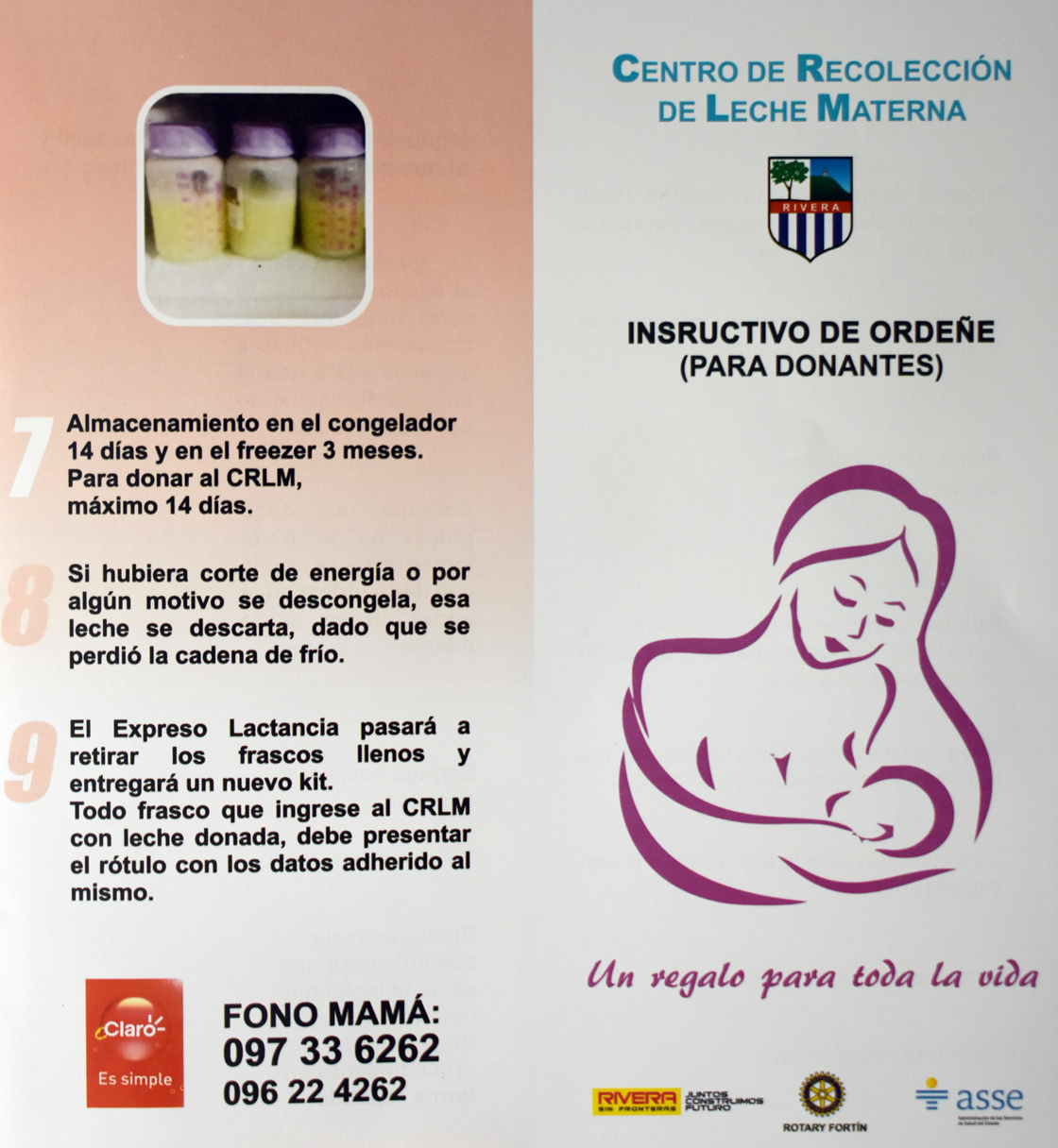 Para la Sra. intendente es un tema prioritario y hay que fortalecerlo, informó Schiavo y agregó que a partir del mes de setiembre, el banco de Leche Materna (Tacuarembó) recibe nuevamente la leche materna excedente que se recolecta en Rivera, para después regresar procesada y destinada a los niños prematuros que dependen de la leche para vivir y desarrollarse”.