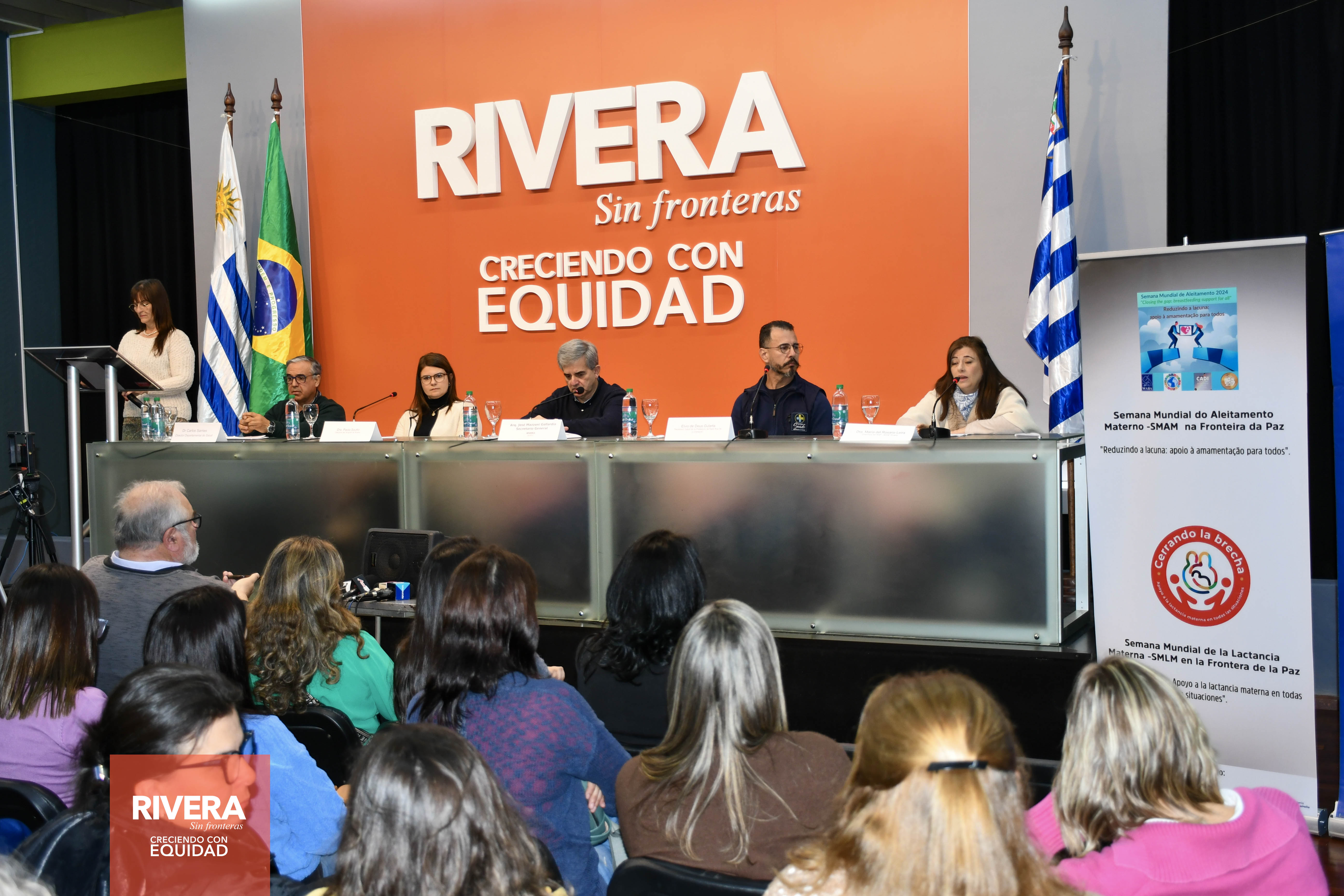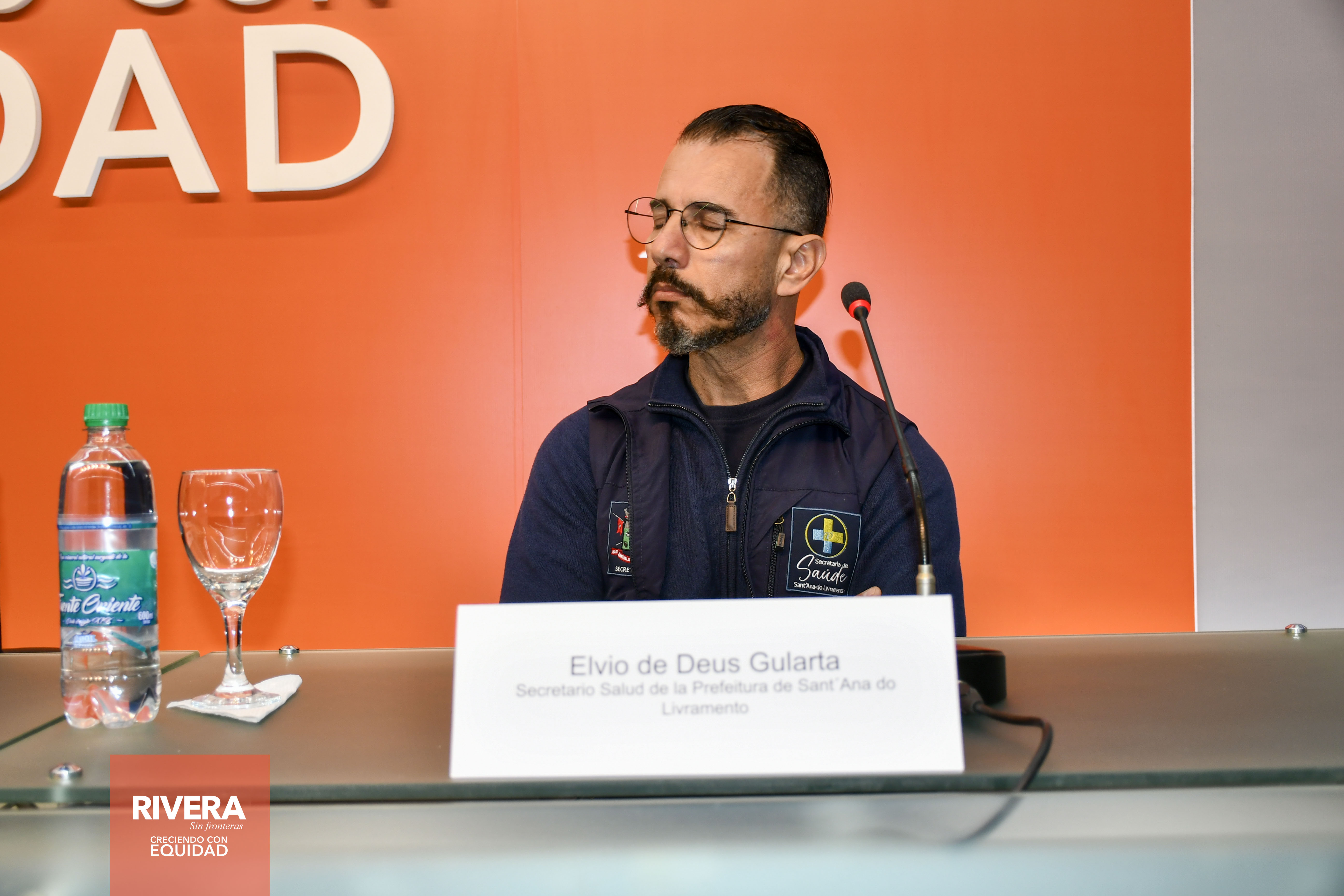 Presentes en la mesa de conferencias el Secretario General de la IDR, Arq. José Mazzoni Gollardía, el director Departamental de Salud, Dr. Carlos Sarries, la Directora RAP – ASSE – Rivera, Dra. María Leira, la directora del Hospital de Rivera, Dra. Paula Soutto y el representante de la Prefeitura de Santana do Livramento, Elvio Gularte.