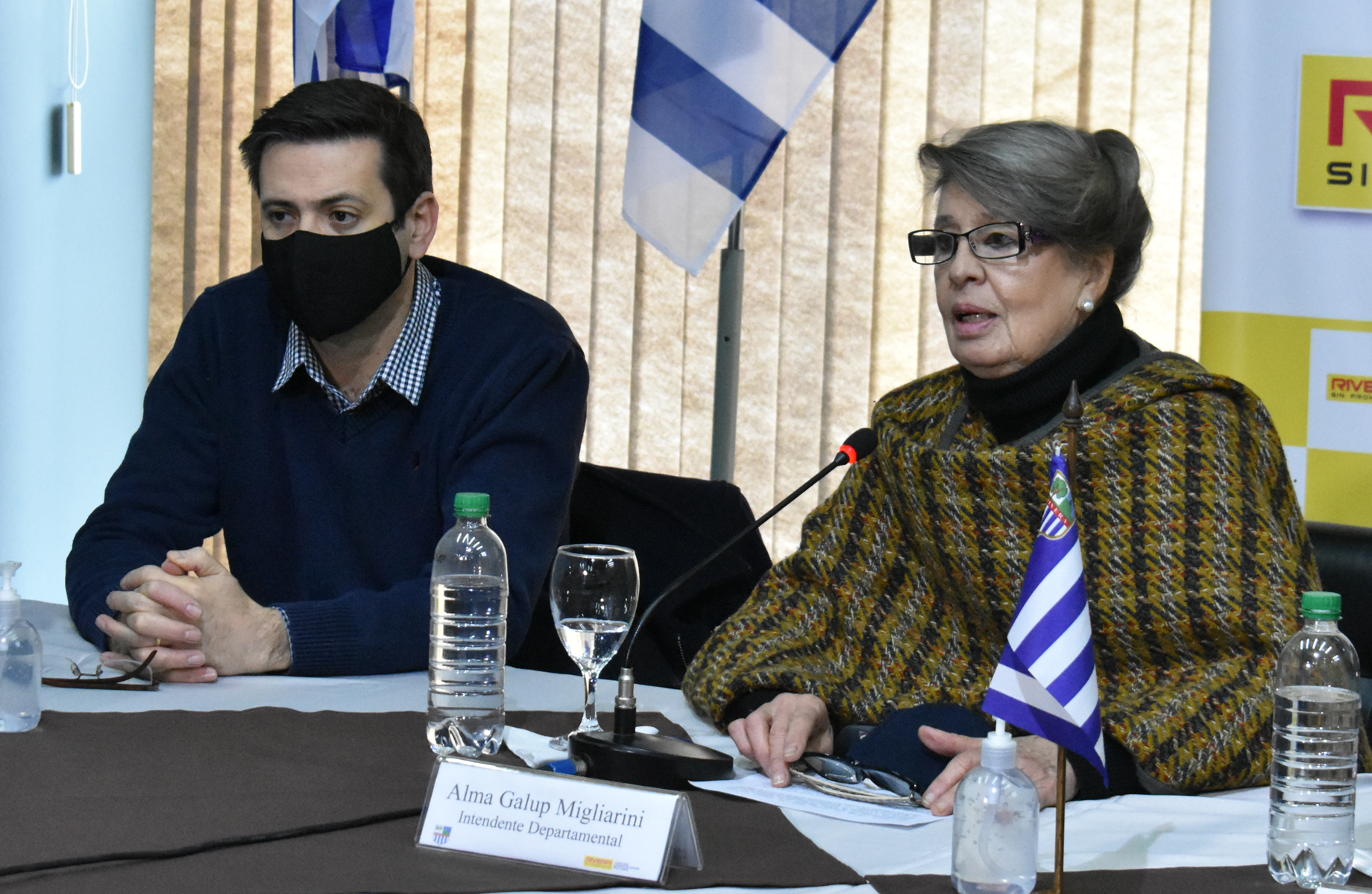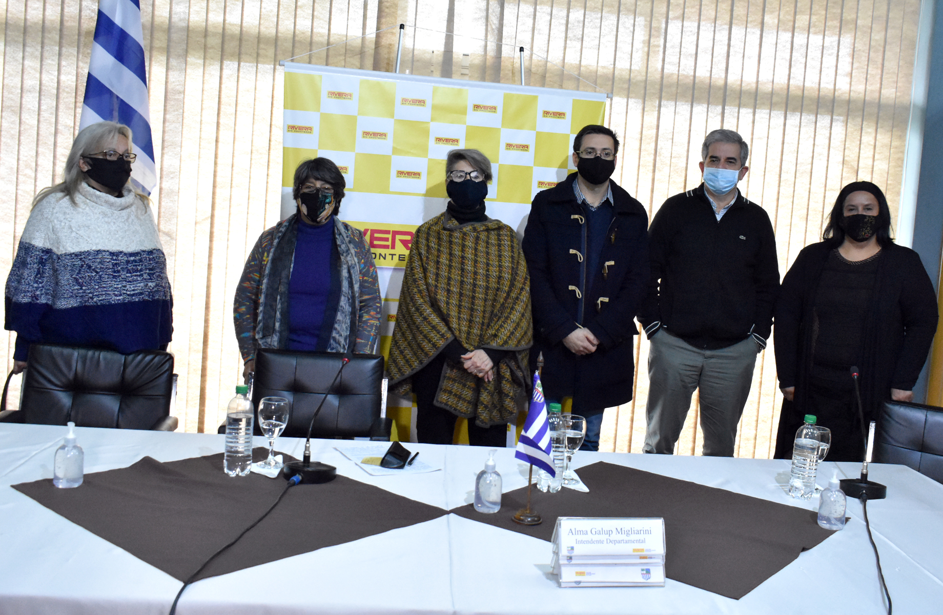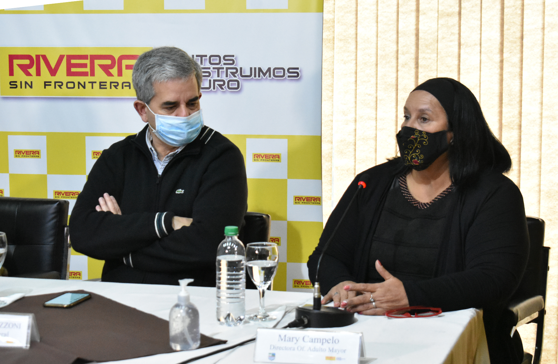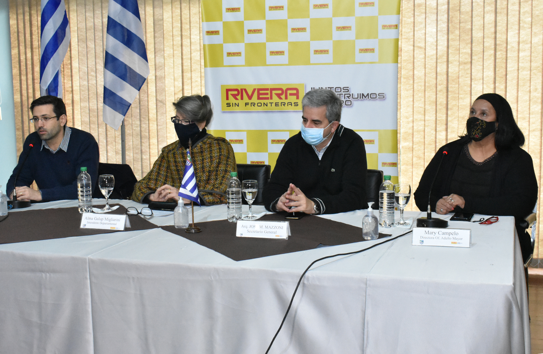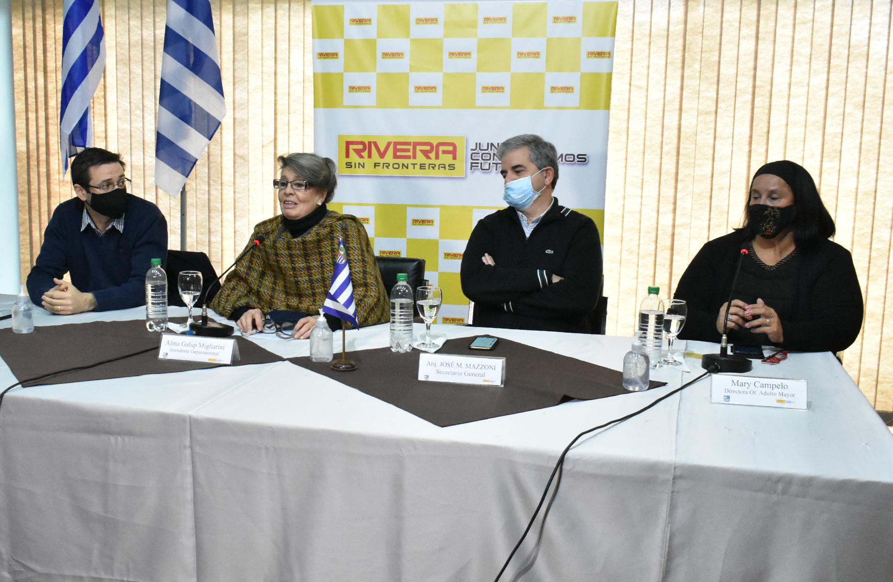 En la ceremonia de presentación, conformaron la mesa, la intendente departamental de Rivera, Alma Galup Migliarini, el secretario general de la IDR, Arq. José Mazzoni, el director general de Promoción y Acción Social, Cr. Giovani Conti y la directora de la oficina del Adulto Mayor, Mary Campelo.