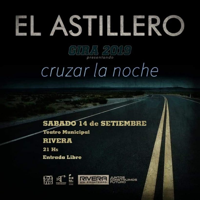 El día sábado 14 de setiembre, a las 21 horas, El Astillero presenta la gira 2019 cruzar la noche. Se llevará a cabo en el Teatro Municipal de Rivera con entrada libre.
