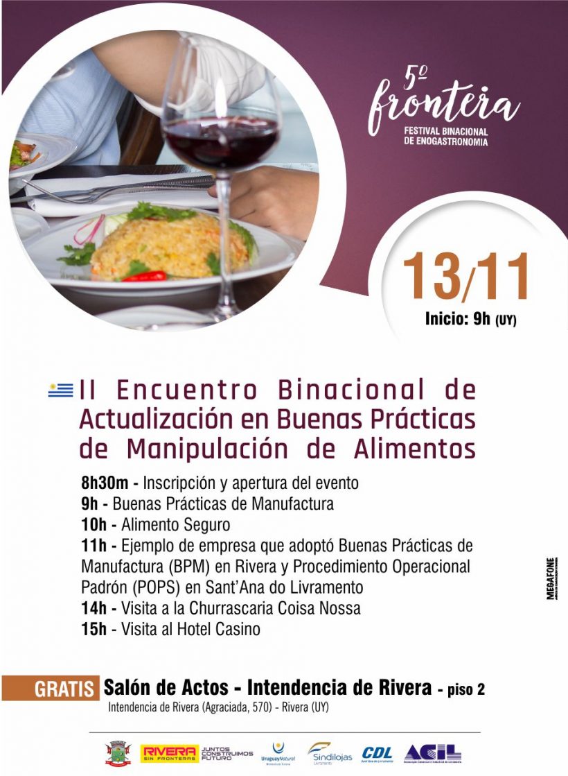 El 2º Encuentro de actualización en buenas prácticas de manipulación de alimentos, se realizará el 13 de noviembre, a las 9 horas, en el Salón de Actos de la IDR. Este encuentro se realiza en el marco del V Festival de Enogastronomía.