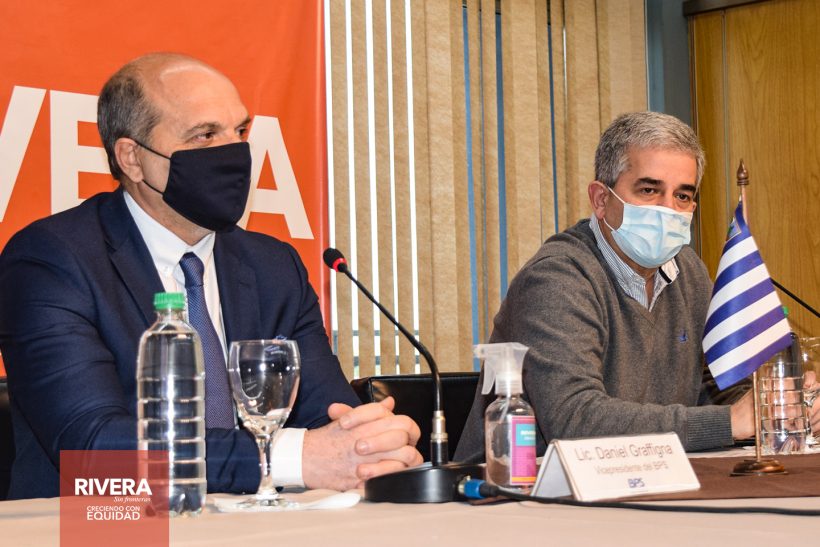 El secretario general de la Intendencia Departamental de Rivera, Arq. José Mazzoni Gollardía, recibió al vicepresidente del B.P.S, Lic. Daniel Gragffigna.
