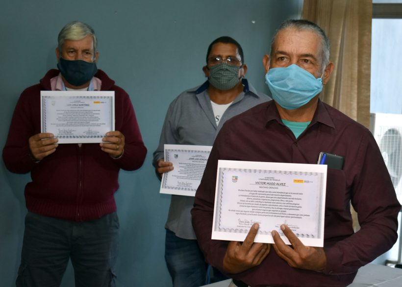 En la mañana del jueves 30 de abril, en Sala de conferencias de la Intendencia Departamental de Rivera, la intendente Alma Galup Migliarini, convocó a 6 funcionarios municipales que se jubilan, para agradecerles personalmente en un ameno acto, manteniendo las distancias y medidas de protección protocolar del MSP.