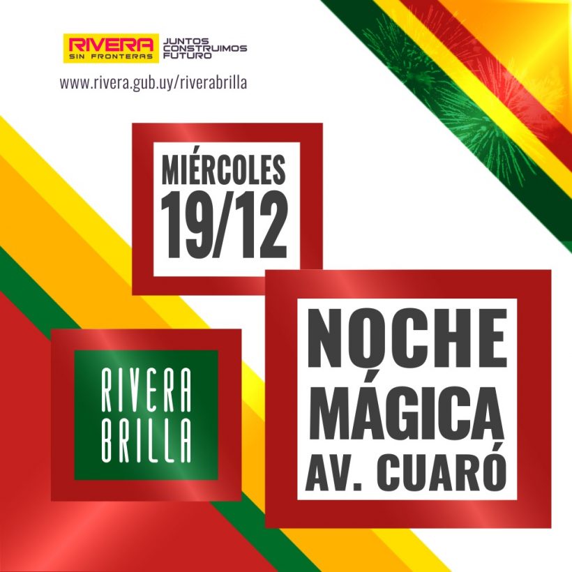 El día miércoles 19 de diciembre, en el marco de Rivera Brilla, se llevará a cabo la Noche Mágica por Av. Cuaró Programación completa (descargar)