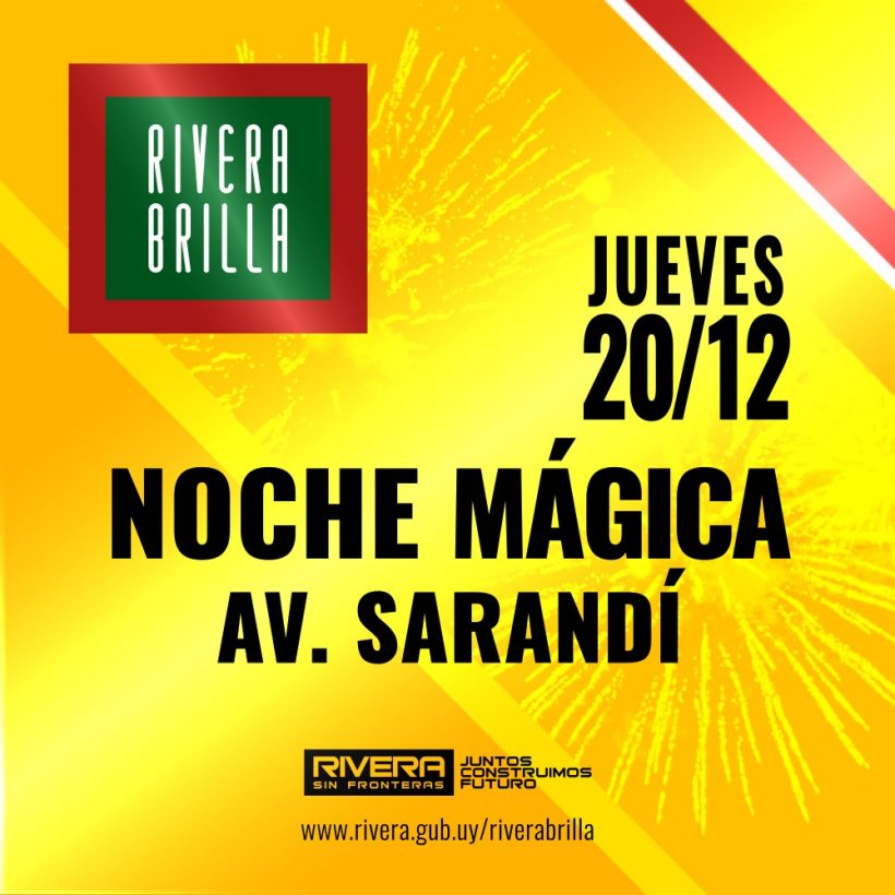 El día jueves 20 de diciembre, en el marco de Rivera Brilla, se llevará a cabo la Noche Mágica por Av. Sarandí. Programación completa (descargar)