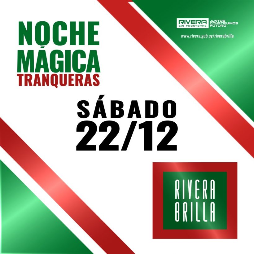 El día sábado 22 de diciembre, en el marco de Rivera Brilla, se llevará a cabo la Noche Mágica en la ciudad de Tranqueras. Programación completa (descargar)