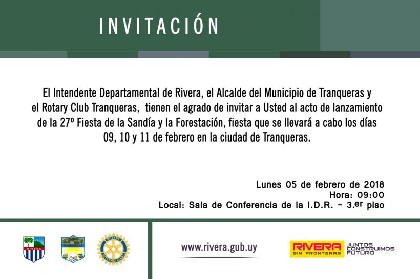 Se llevó a cabo en la jornada de este lunes 5 de febrero, en la sala de conferencias del edificio comunal, el lanzamiento de la 27ª Fiesta de la Sandía y la Forestación, a realizarse en la ciudad de Tranqueras los días 9, 10 y 11 del corriente.
