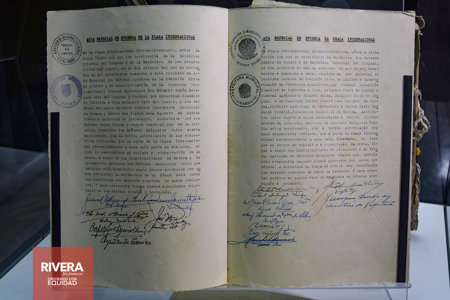 En el marco de los 137 años de creación del departamento de Rivera (1. º de octubre de 1884) y a pocas horas de celebrarse los “Días del Patrimonio” (2 y 3 de octubre); el intendente departamental de Rivera, Cr. Richard Sander Darín, inauguró en el Hall de la IDR, ahora denominado Espacio Cultural Agustín R. Bisio, la exposición de documentos históricos del Parque -Plaza Internacional.