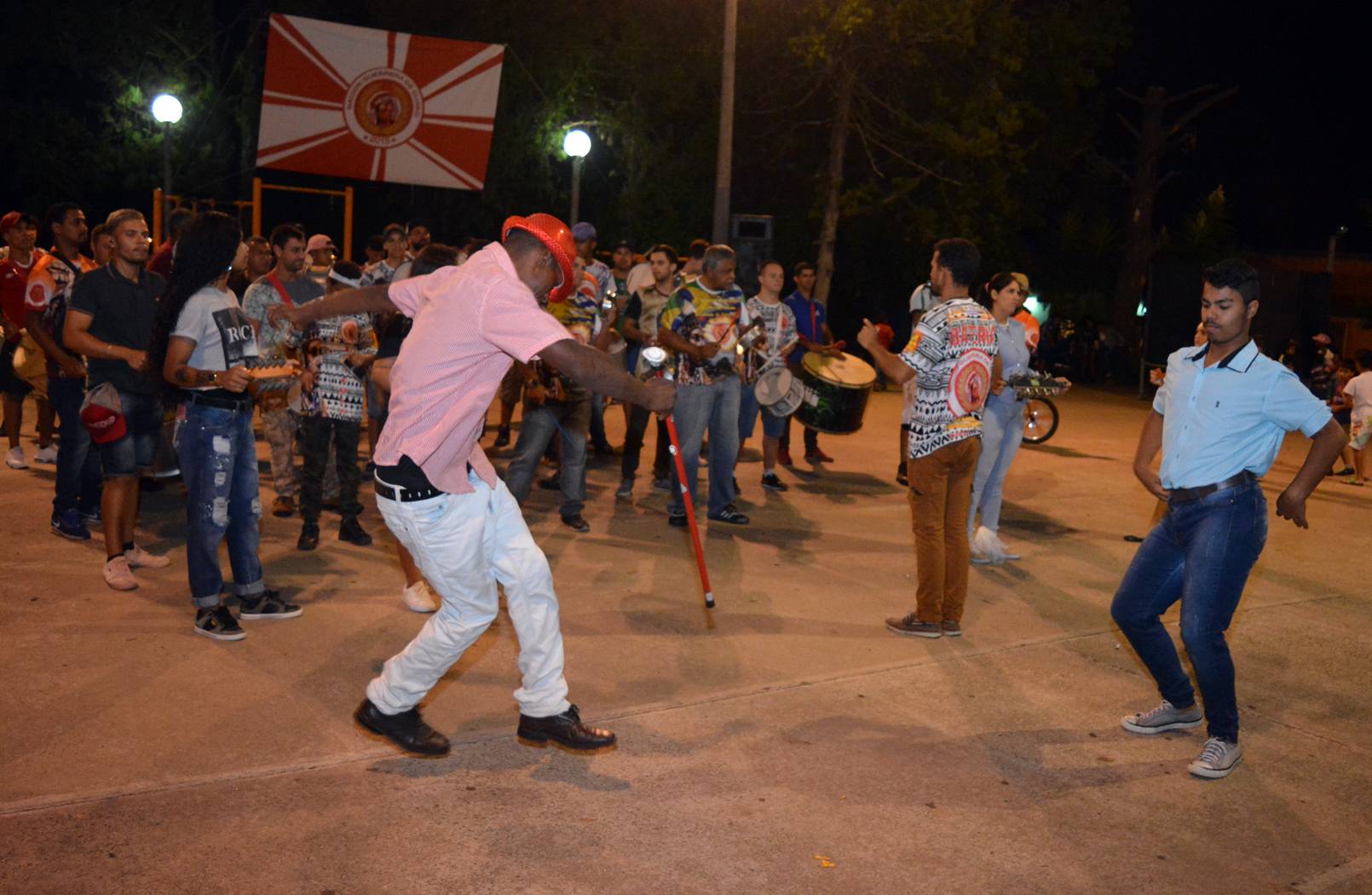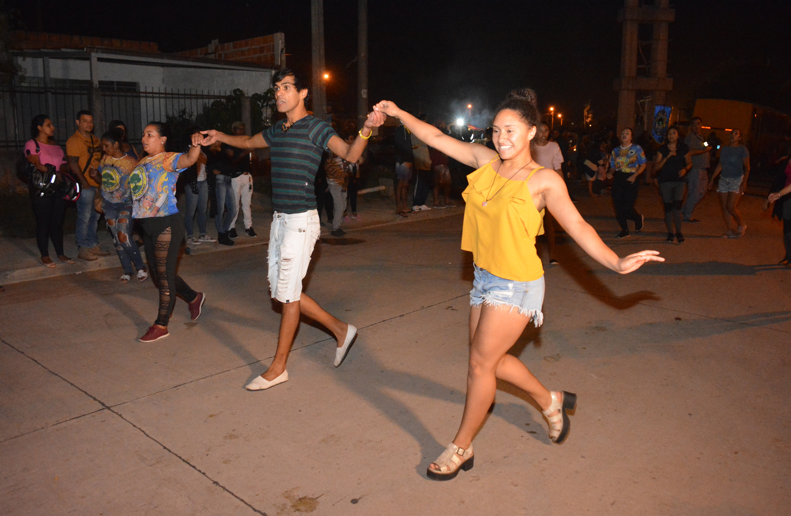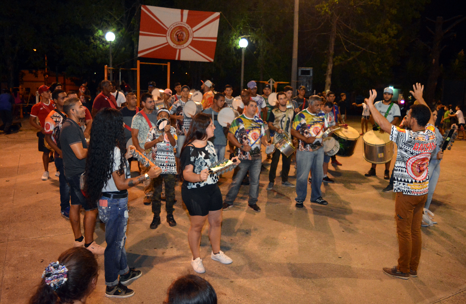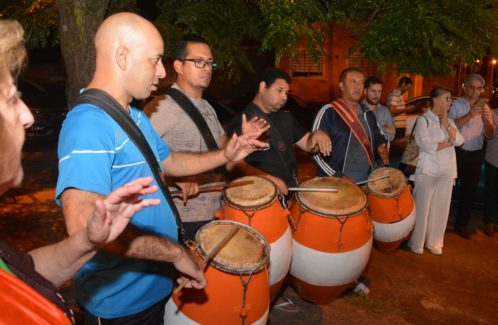La cuarta parada la realizó en el barrio Mandubí, donde ensayaban sobre la calle Ing. Francisco Serralta, los integrantes de la Escuela de Samba Viejo Ombú y al igual que las agrupaciones anteriores, hizo entrega de una bandera.