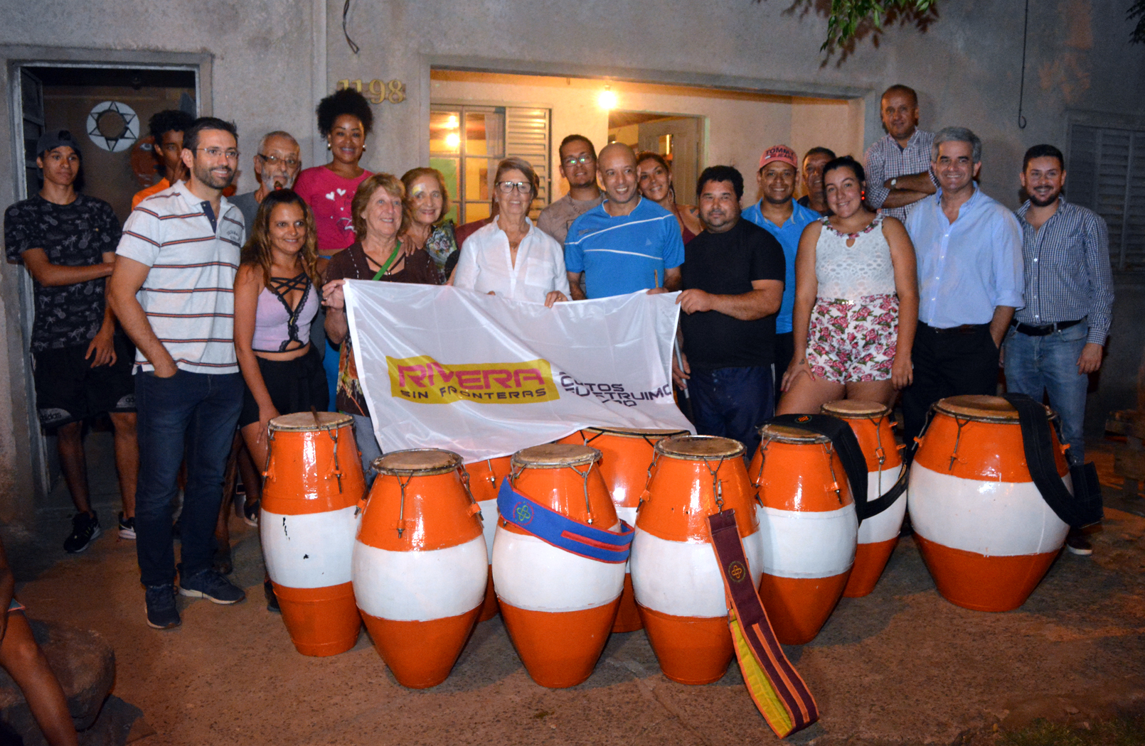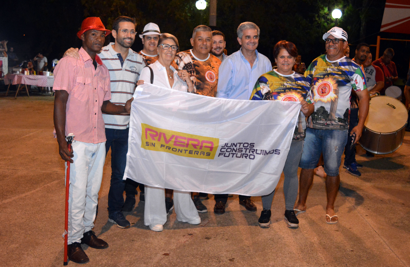 La recorrida siguió con la visita al ensayo del grupo de Negros y Lubolos “Tizones de Ansina”, donde mantuvo una charla amena y al despedirse le entregó la bandera del Gobierno Departamental.