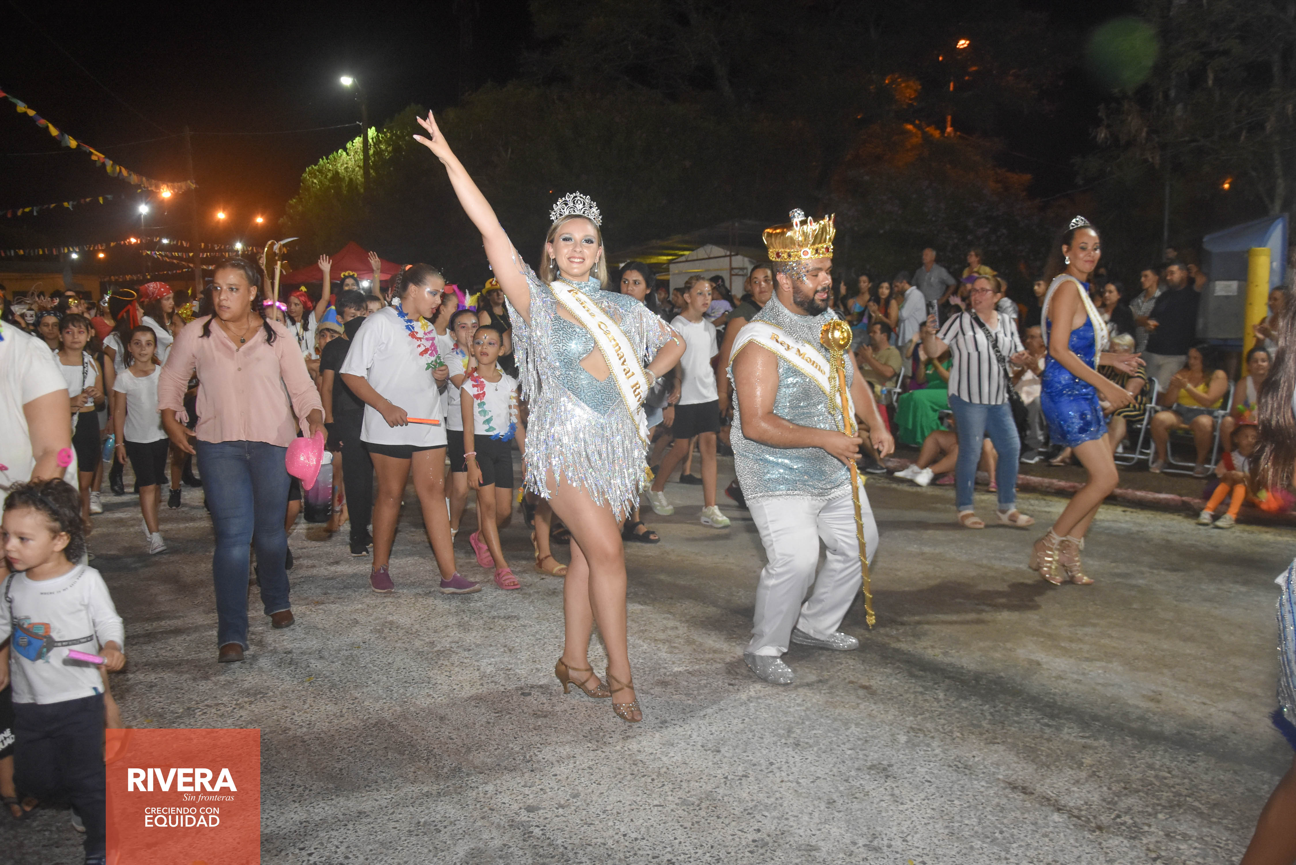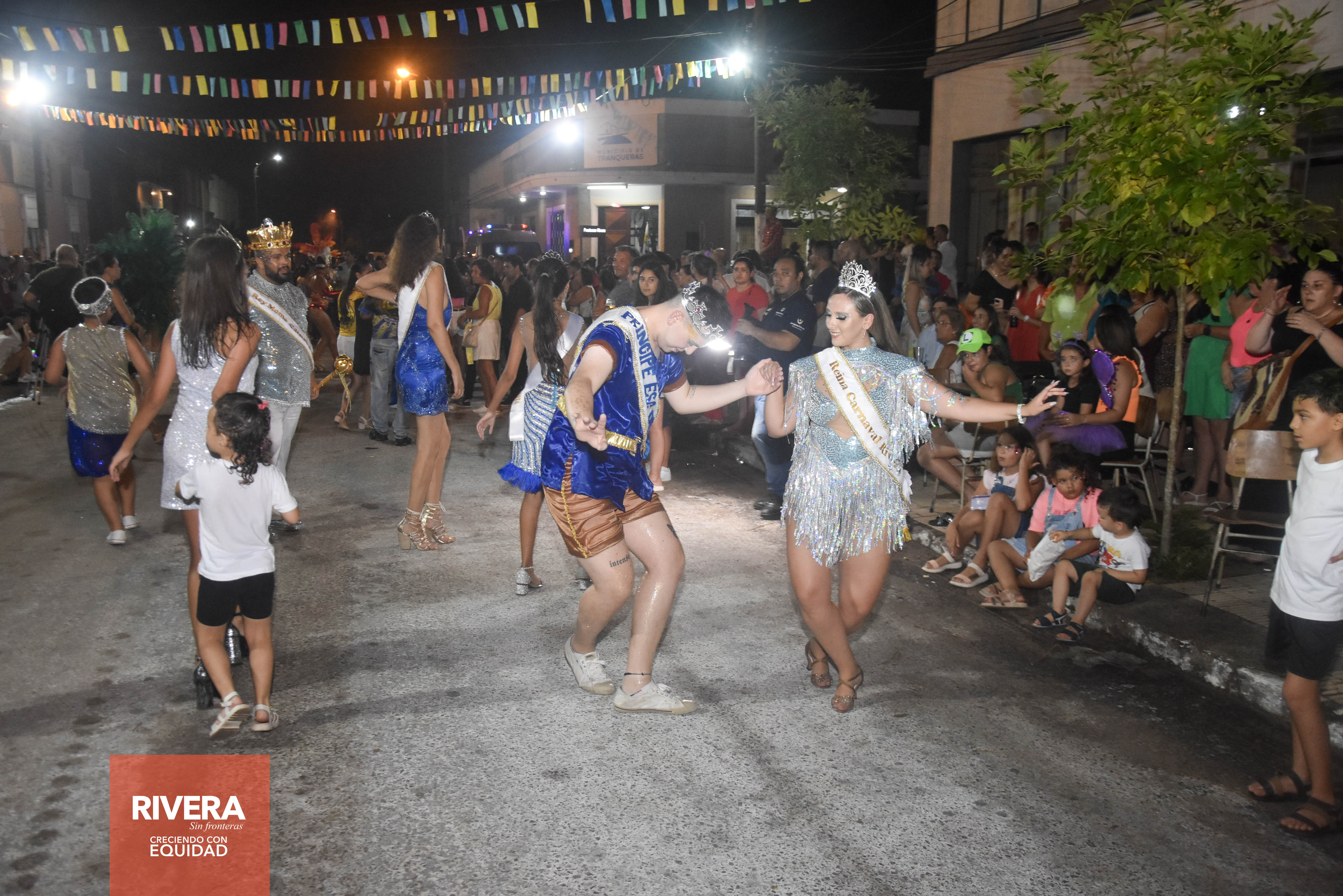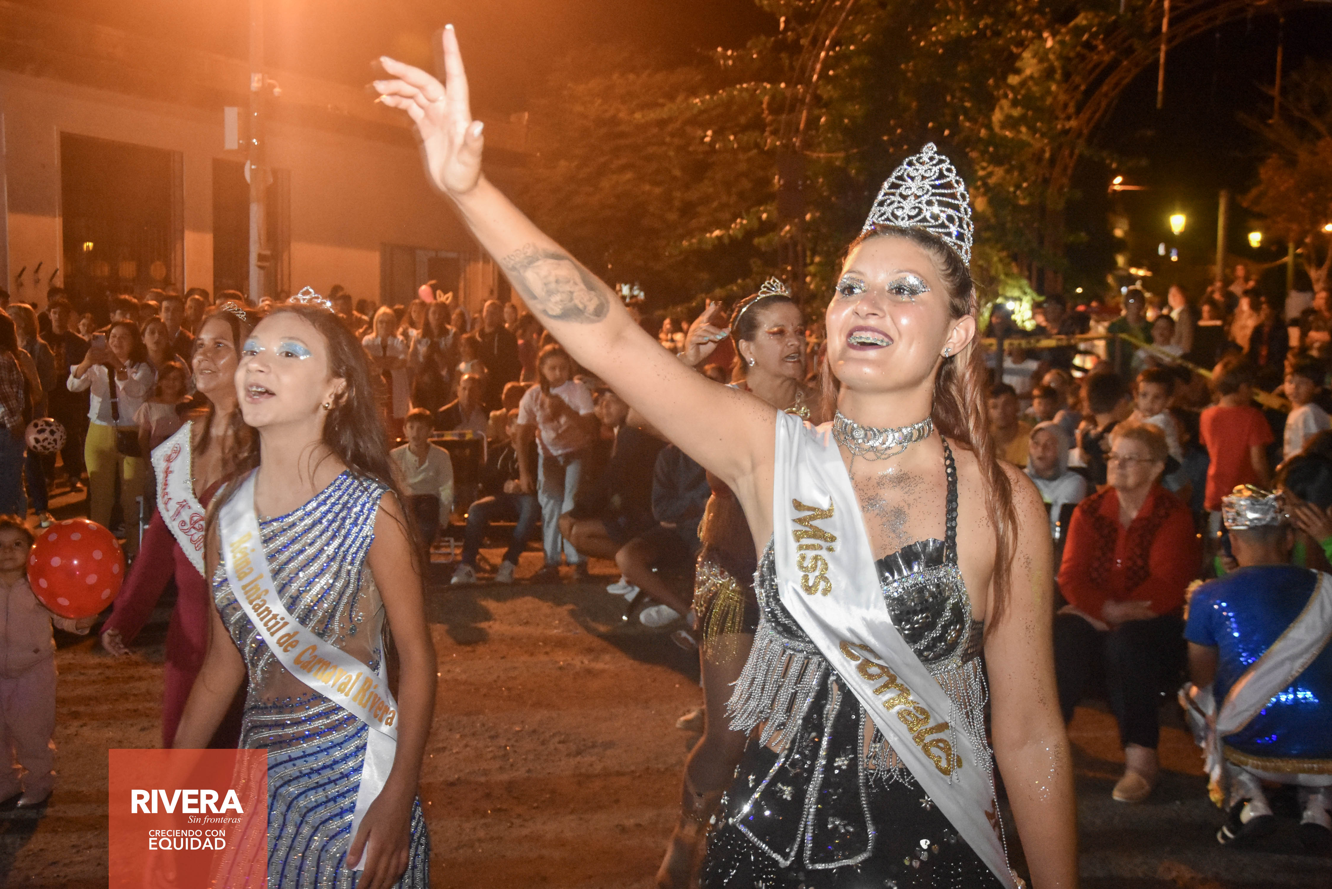 En Minas de Corrales, un desfile de reinas y cortes por calle Dr. Davison, fue el preámbulo de un baile popular musicalizado por banda Ipanema en el escenario del trío eléctrico.