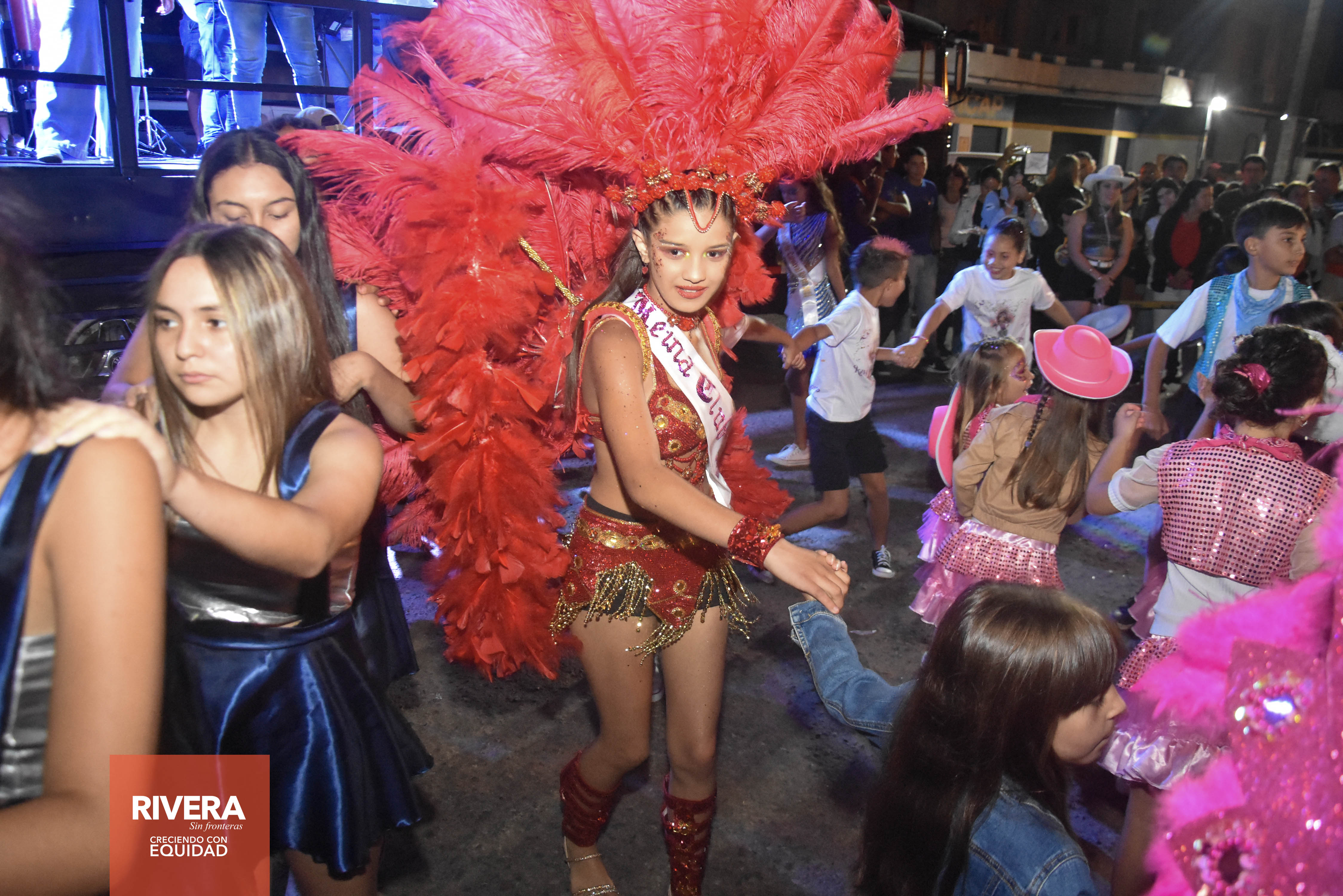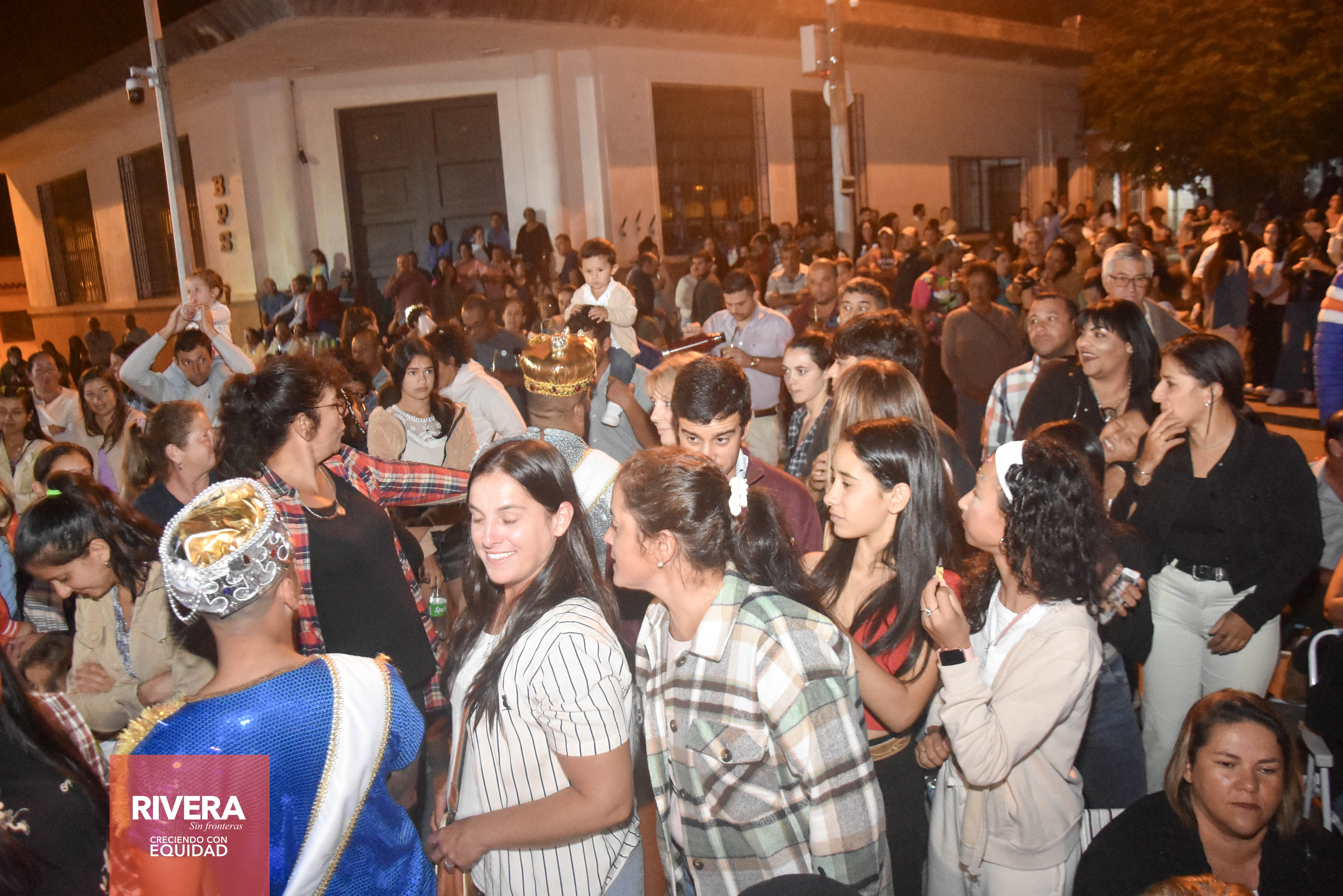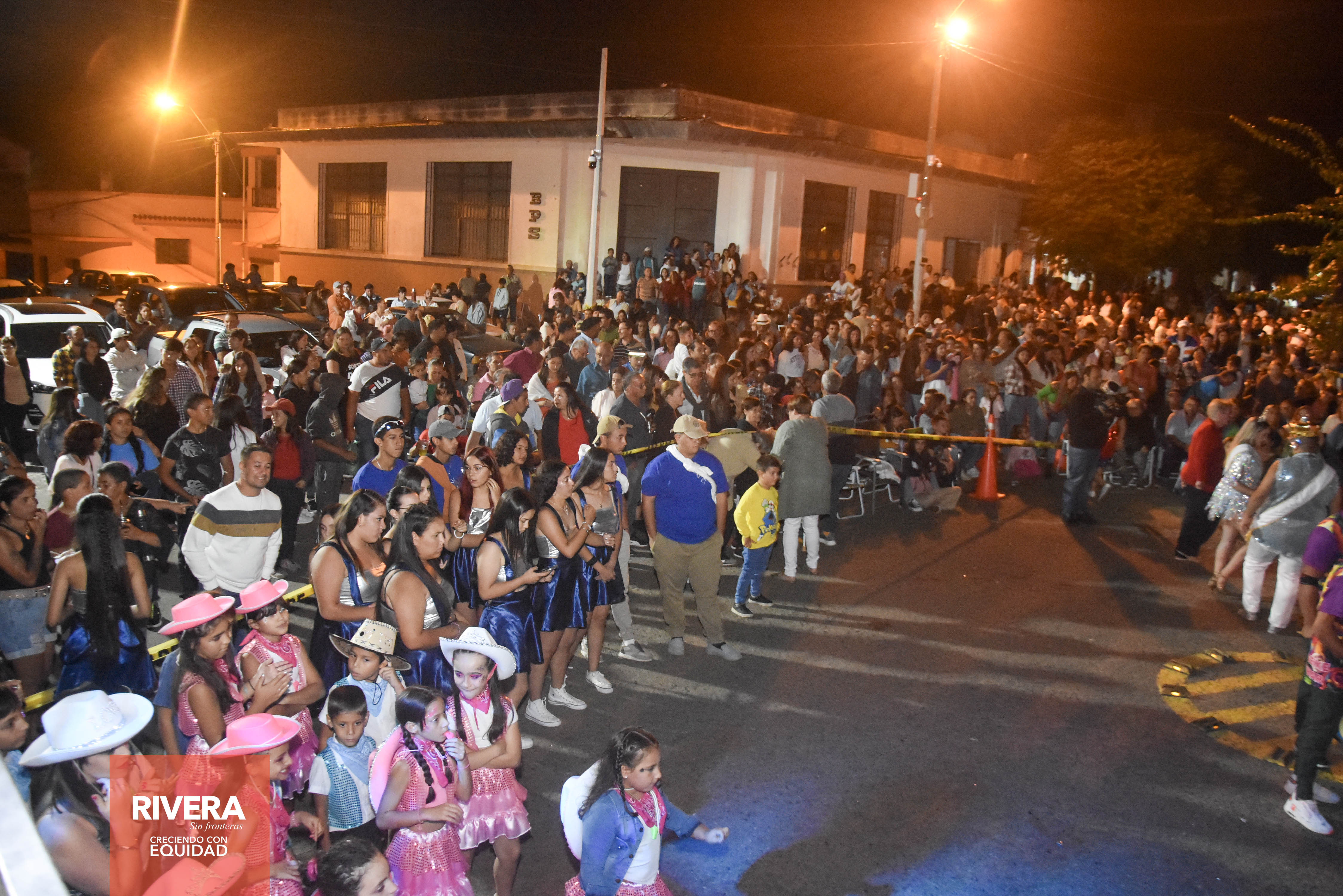 En Minas de Corrales, un desfile de reinas y cortes por calle Dr. Davison, fue el preámbulo de un baile popular musicalizado por banda Ipanema en el escenario del trío eléctrico.