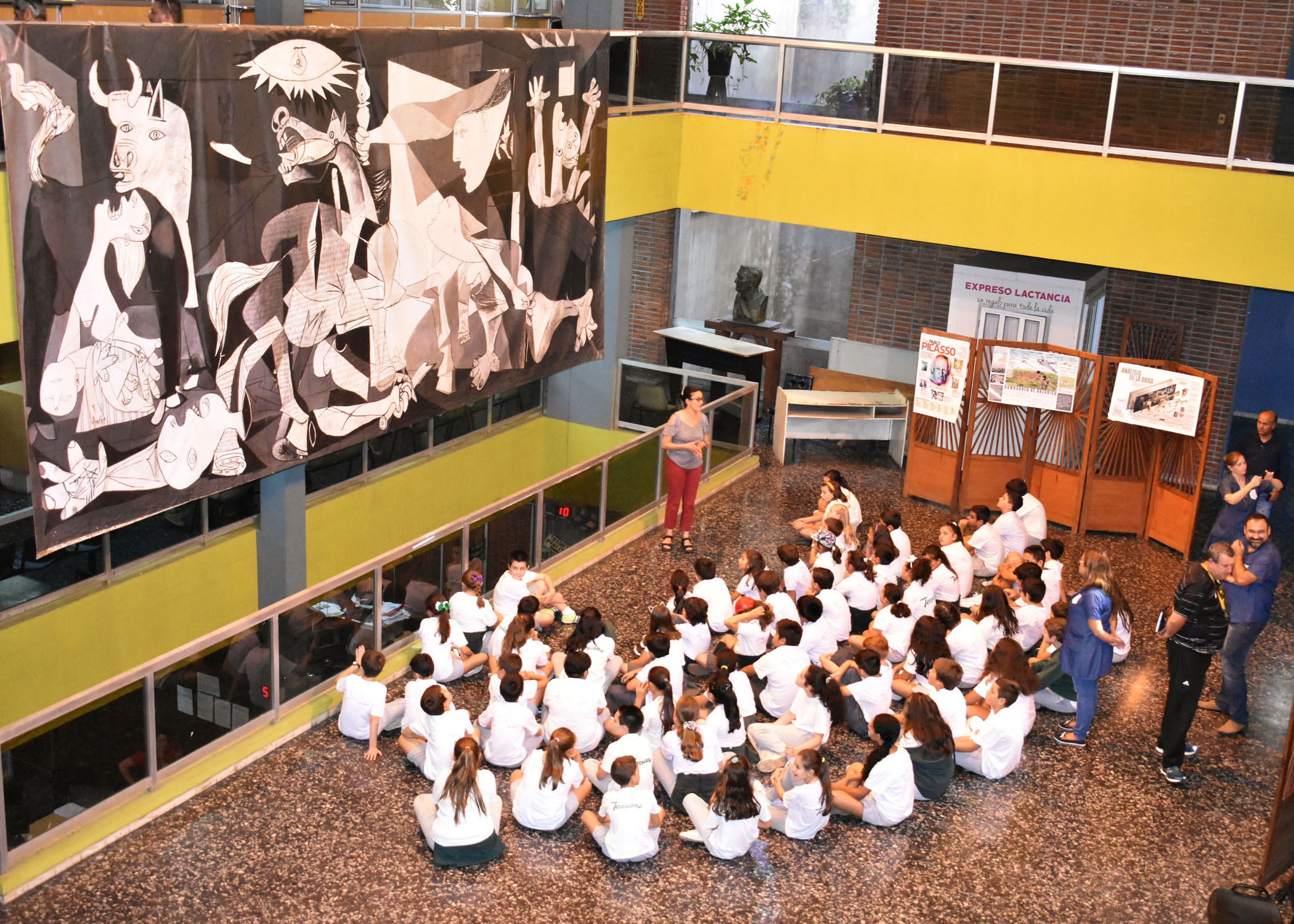 violencia”… “ es una obra muy importante, fue pintada en 1937 por Pablo Picasso, pintor español (nacido en Málaga), la obra le fue encomendada por el Director General de Artes de la República, para presentar en el pabellón español de la Exposición Internacional de París (inaugurada el 12 de julio, 1937), en una época muy difícil de la historia”.