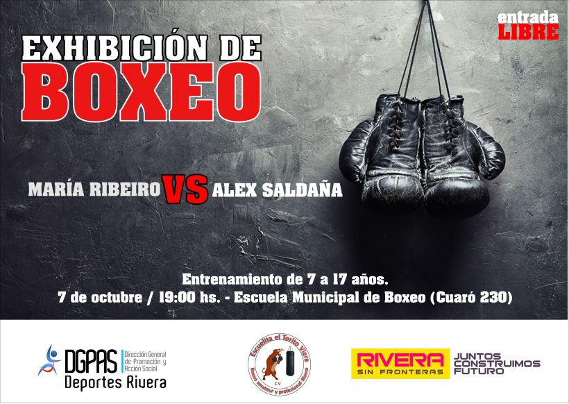 La Dirección General de Promoción y Acción Social a través de División Deportes invita a la Exhibición de Boxeo a realizarse el día 7 de octubre, hora 19:00 en las instalaciones de la Escuela Municipal de Boxeo, Av. Cuaró 230.
