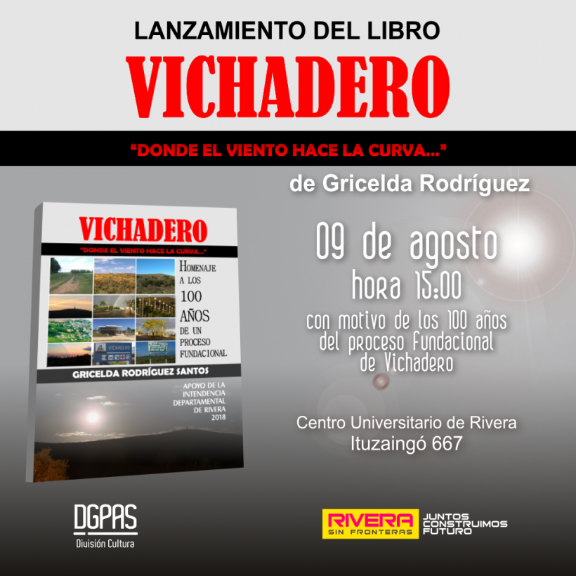 El próximo jueves 9 de agosto, a la hora 15, en salones del Centro Universitario de Rivera, tendrá lugar el lanzamiento del libro «VICHADERO: Donde el viento hace la curva» de la Mtra. Gricelda Rodríguez.