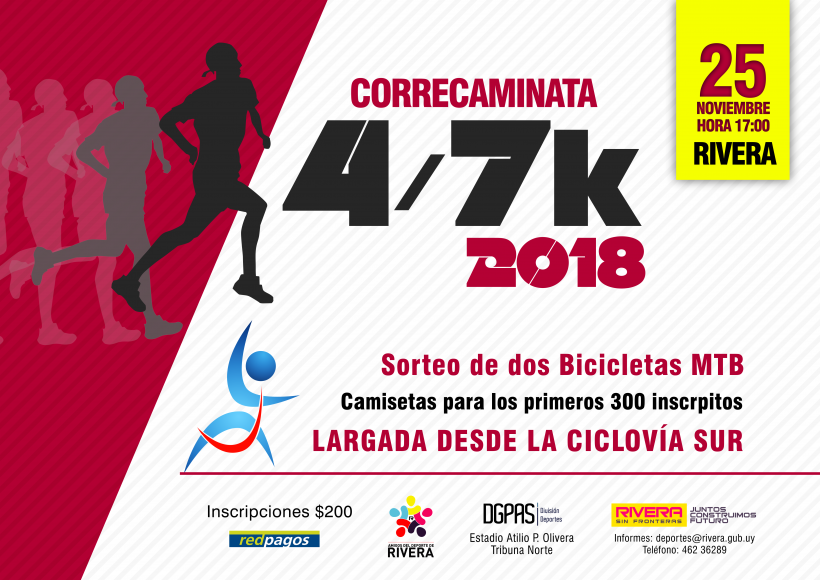 Faltan pocos días para la Correcaminata 4/7 K 2018 Llega la 5ta. edición de la Correcamienta 4/7 K. 25 de noviembre a las 17:00 horas. Largada desde la Ciclovía Sur. Sorteo de 2 bicicletas MTB Remera de regalo a los primeros 300 inscriptos. Premios para los primeros 4 lugares de las categorías masculina y […]