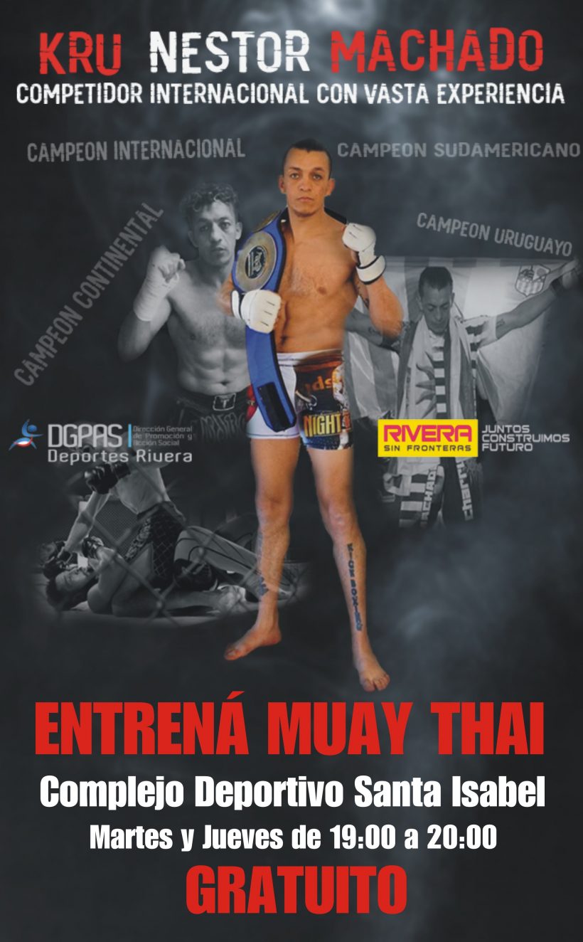 Esta semana comienzan las clases de Muay Thai en el Complejo Polidepotivo Santa Isabel con Nestor Machdo, campeón Intercontinetal de MMA. Días martes y jueves de 19:00 a 20:00 horas. Todas las edades. CLASES GRATUITAS.