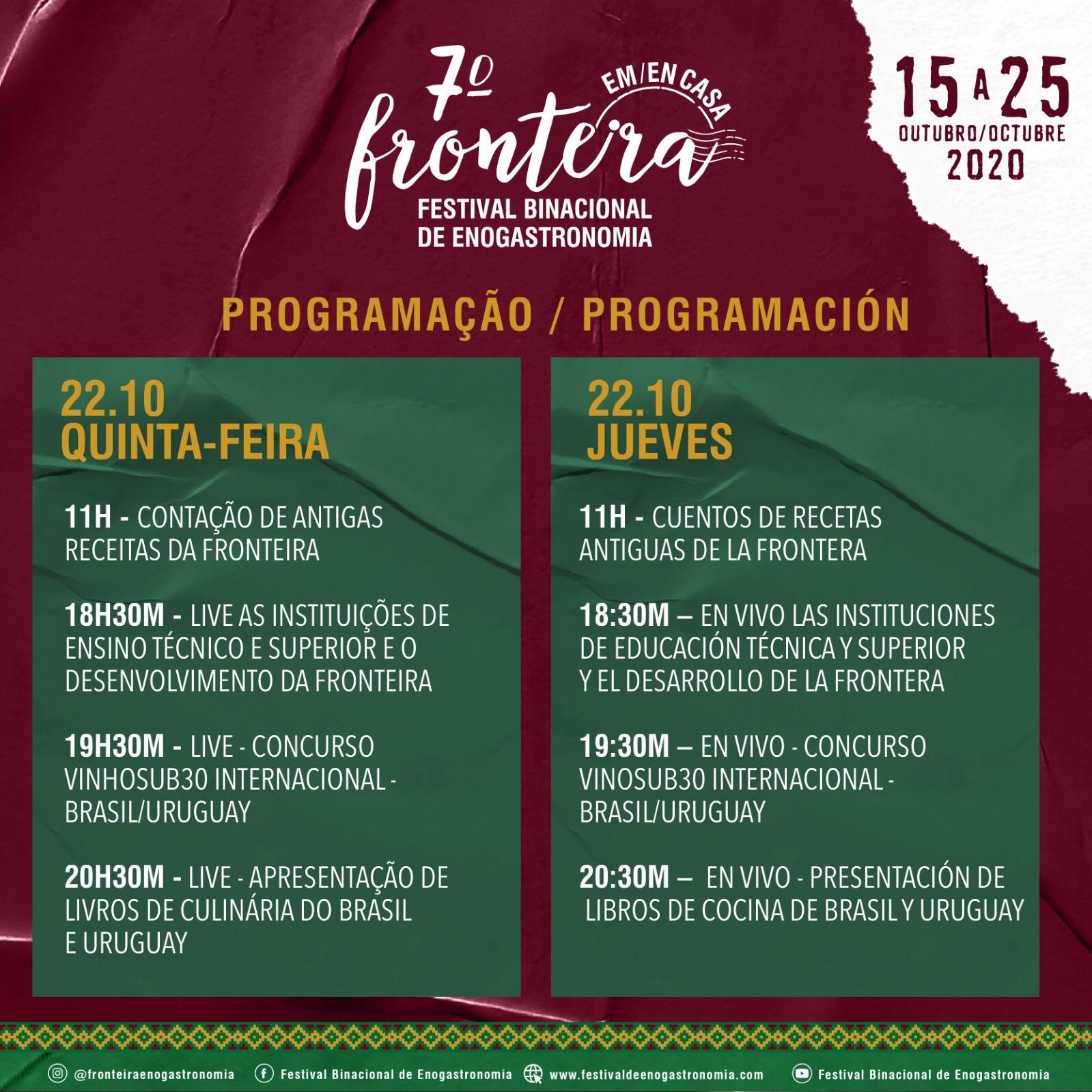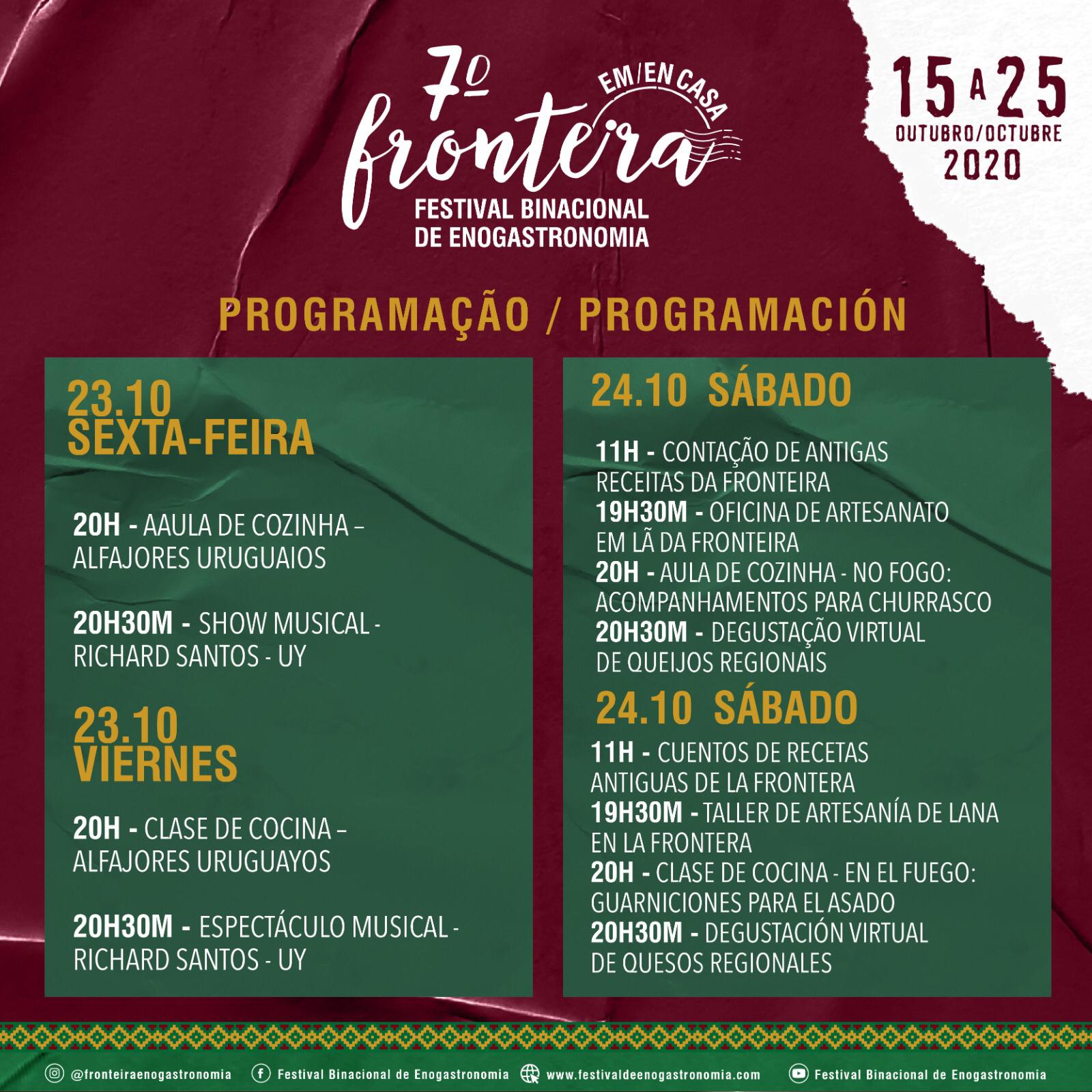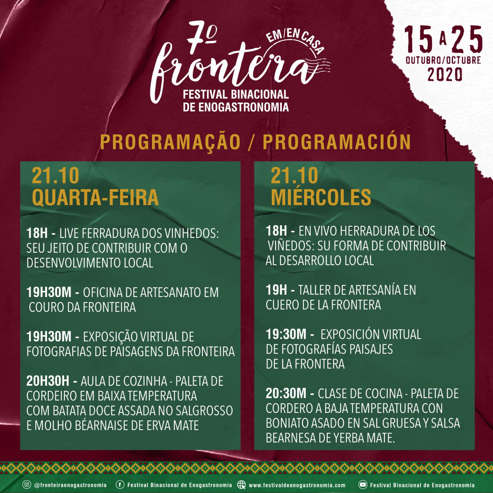 El evento, que este año será realizado en forma virtual, contará con diversas actividades transmitidas a través de plataformas como Instagram (@fronteiraenogastronomia) y Facebook (fb/FronteiraEnogastronomia/).