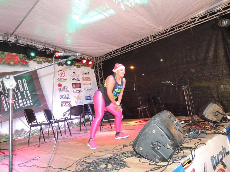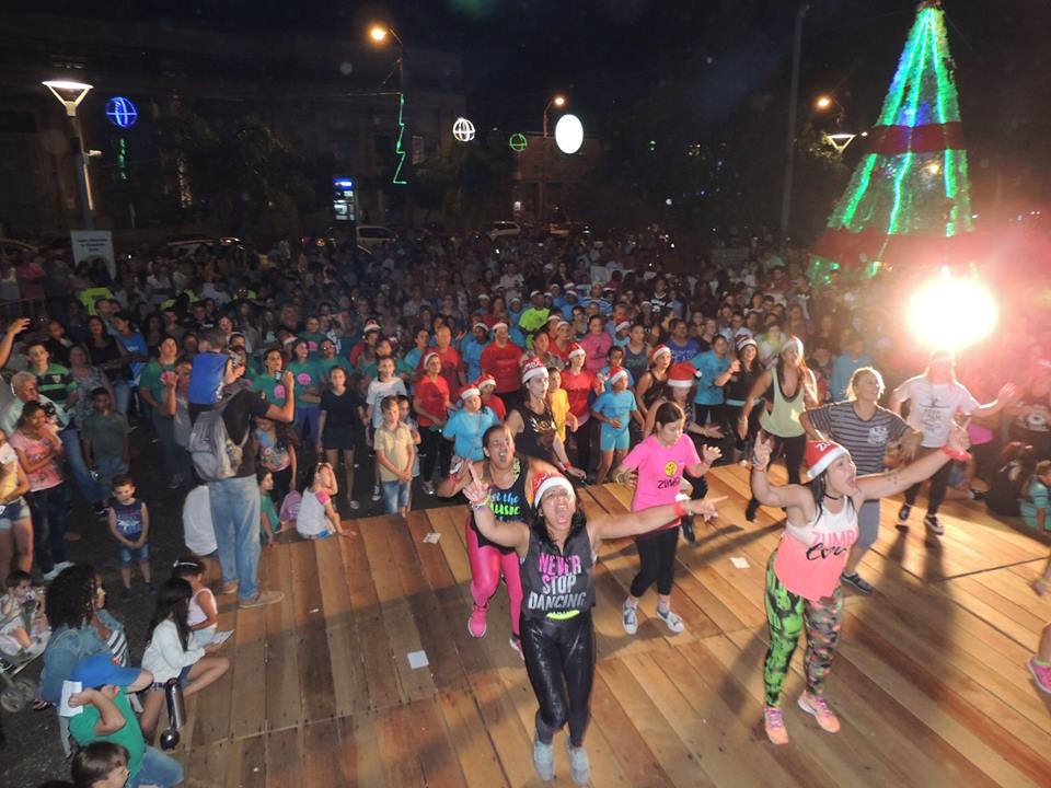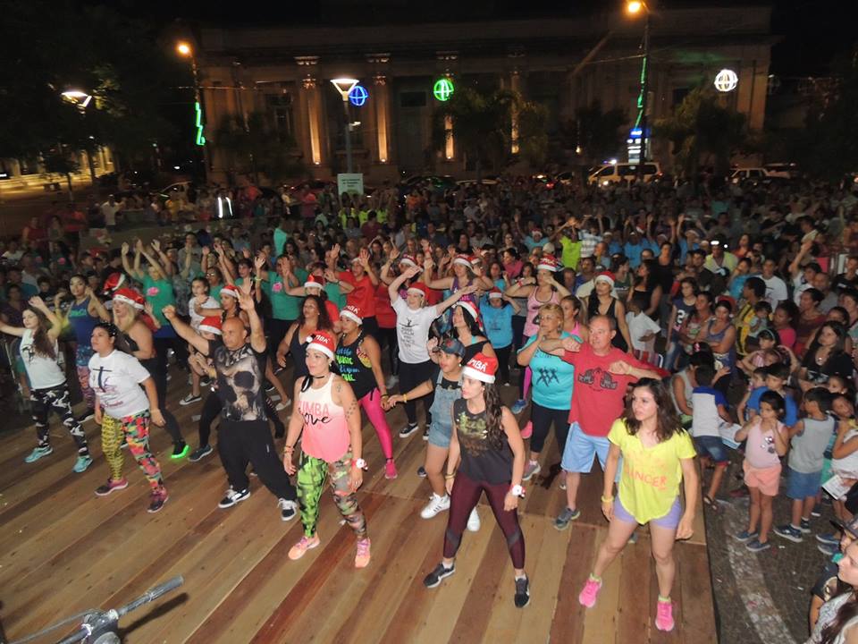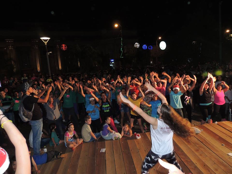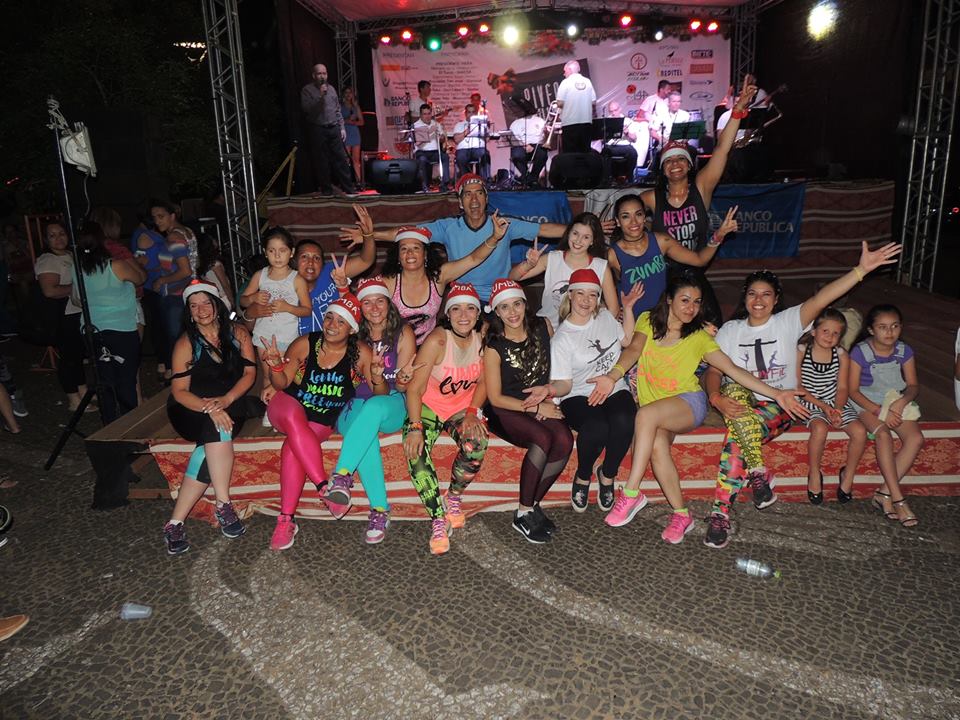 El pasado 14 de diciembre, en el marco de Rivera Brilla, profesores de la División Deportes, en conjunto con la Coordinación de Centros Barriales (IDR) e instructores de Fitness privados, organizaron una gran movida en Plaza Artigas.