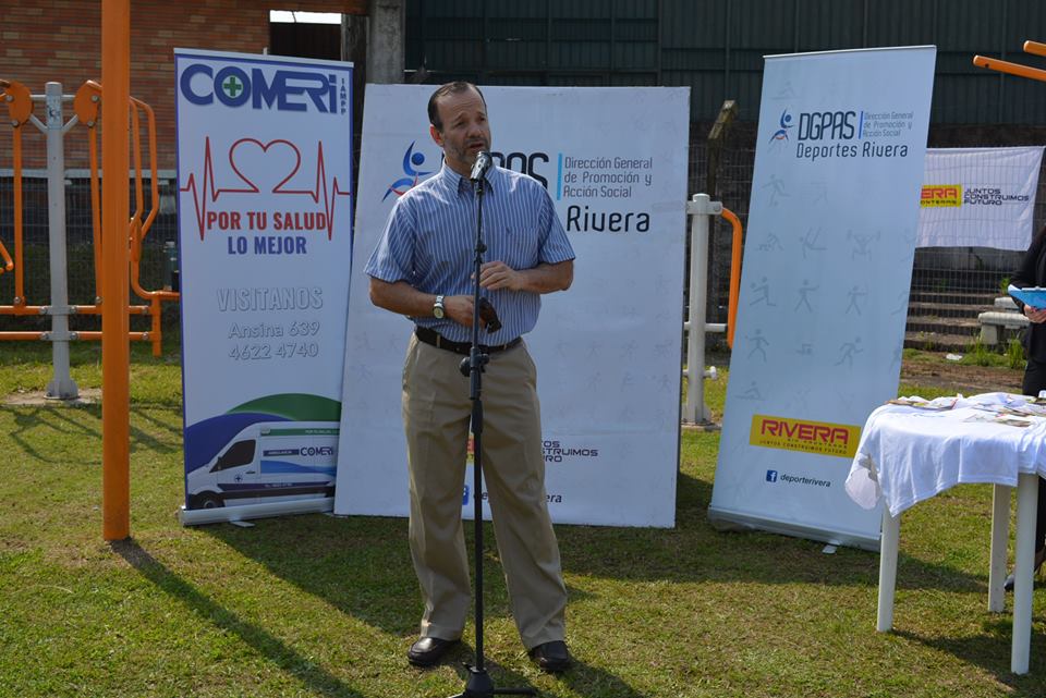 Por su parte el Director General de Promoción y Acción Social, Giovani Conti, en representación del intendente Departamental, Dr. Marne Osorio, agradeció a todos los presentes y apoyó al Programa: “Es muy importante lo que estamos lanzando hoy porque marca el camino de lo que venimos tratando de hacer y hace parte de un gran paraguas que tenemos bajo nuestra Dirección, que trabaja el deporte, la cultura, las capacitaciones y una serie de actividades que estamos realizando en los Centros Barriales y demás. En esta oportunidad trabajamos con un socio que es COMERI al cual le agradecemos porque es un socio inseparable de la División Deportes…..”