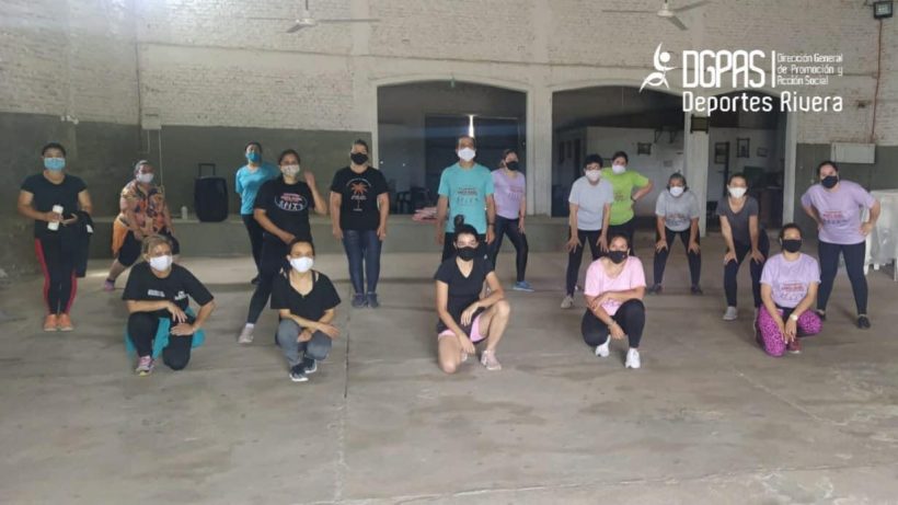Participantes activas de las prácticas de ejercicios aeróbicos en Cerro Pelado se reinventan. Realizan ejercicios localizados, aeróbica y ritmos al aire libre, adaptándose a la nueva normalidad. El deporte nos une y nos convoca a un mejor futuro.