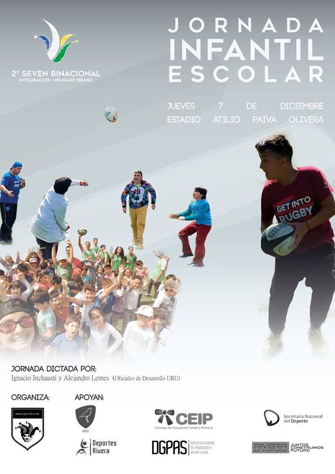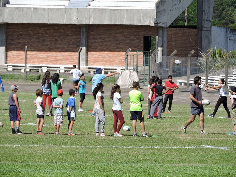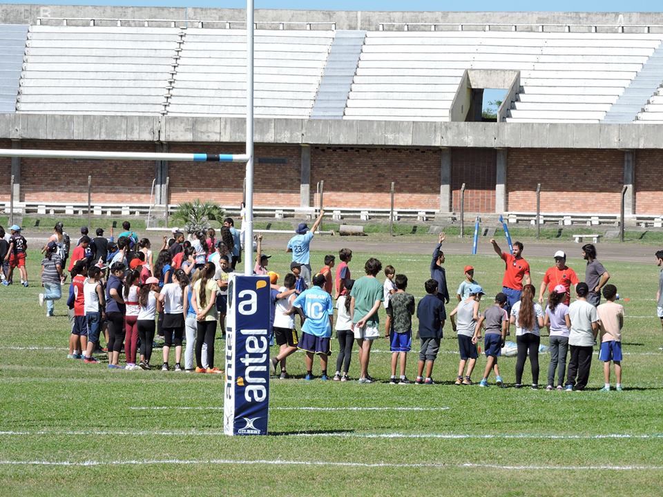 El evento se divide en tres jornadas en el Estadio Atilio Paiva Olivera, hoy jueves 7 se está brindando una Clinica Escolar de Rugby para 250 niños y niñas de escuelas y colegios de todo el departamento.