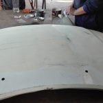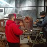 Las piezas, capó y frente pasan por el proceso de chapeado, realizado por 12 alumnos.