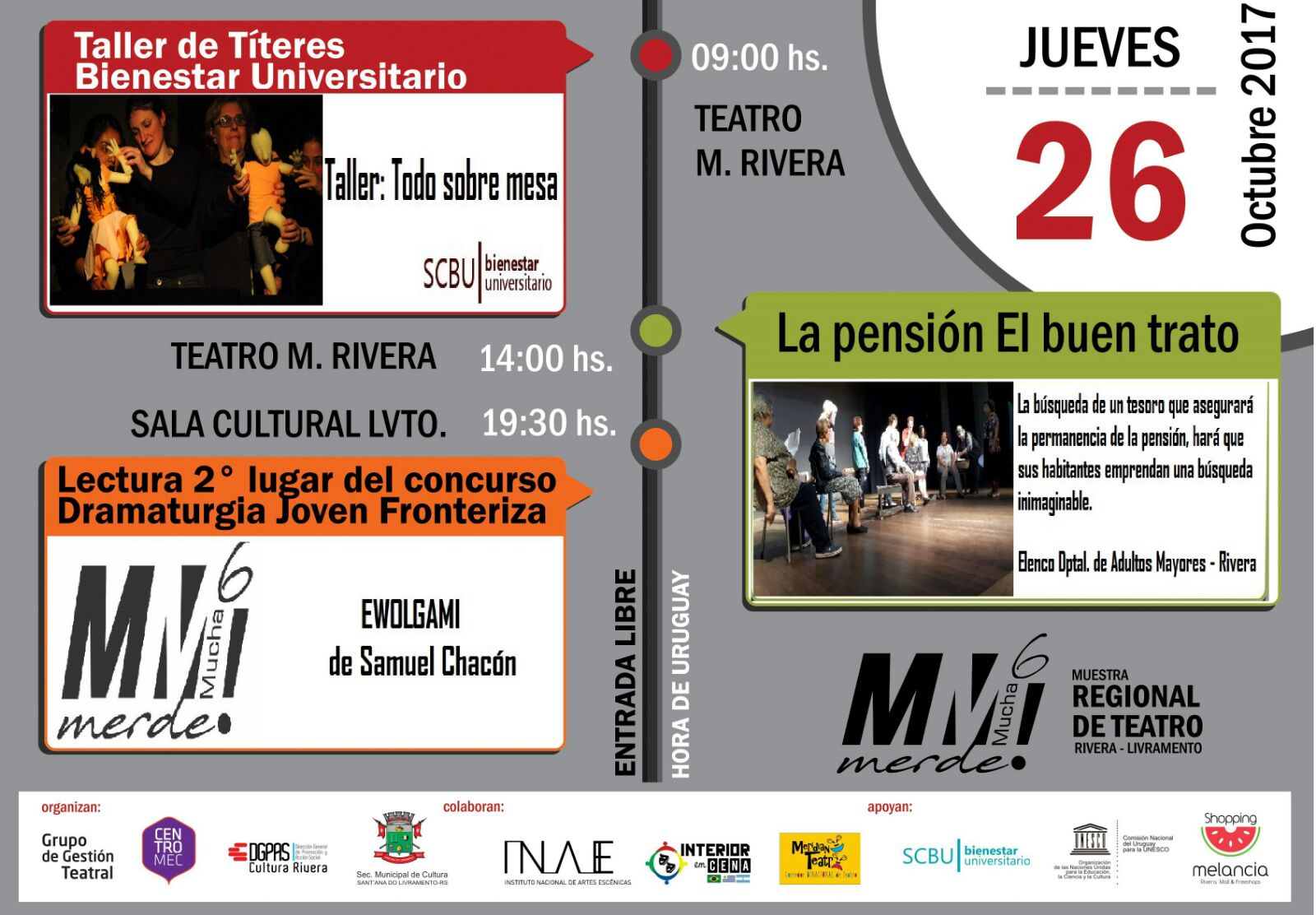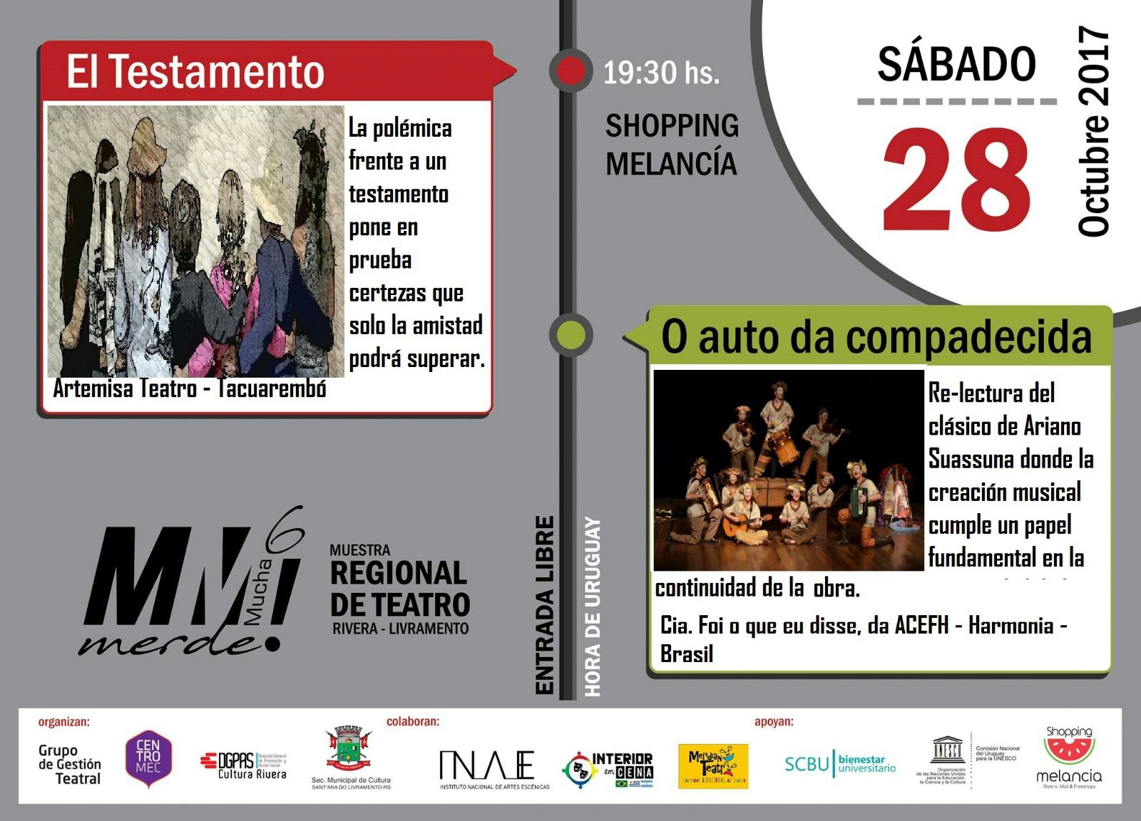 La Muestra Regional de Teatro «Mucha Merde» se realiza del 22 al 29 de octubre, con entrada gratuita.