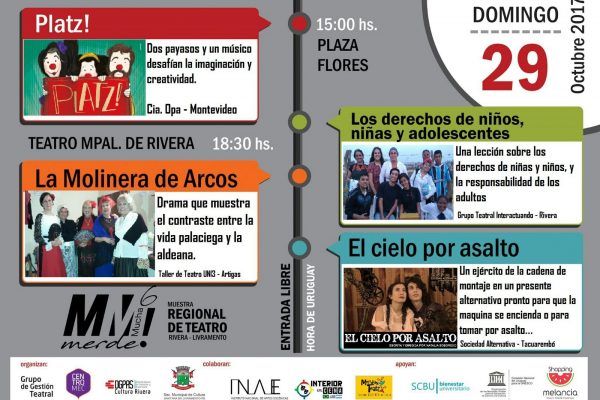 29 24 octubre, 2017 Imagen publicada en : Comenzó la 6ª Muestra Regional de Teatro «Mucha Merde» imagen disponible en: 1600x1146 / 150x150 / 300x215 / 768x550 / 1024x733 / 1536x1100 / 1600x1146 / 600x400 / 820x587 / 272x182 ← Anterior Siguiente →