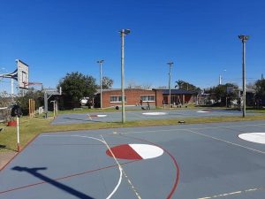 Se recuperan canchas de basketball, en el centro barrial Villa Sonia