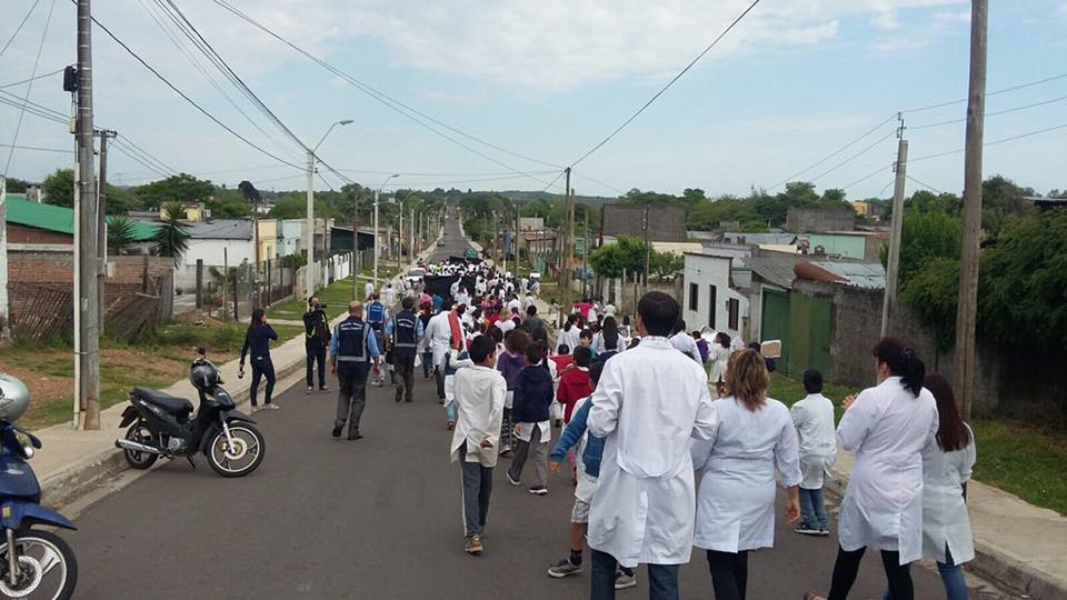 En el marco de la X Semana Nacional de Seguridad Vial, la Dirección General de Tránsito y Transporte realizó una marcha de concientización sobre el tránsito en el barrio 33 Orientales.